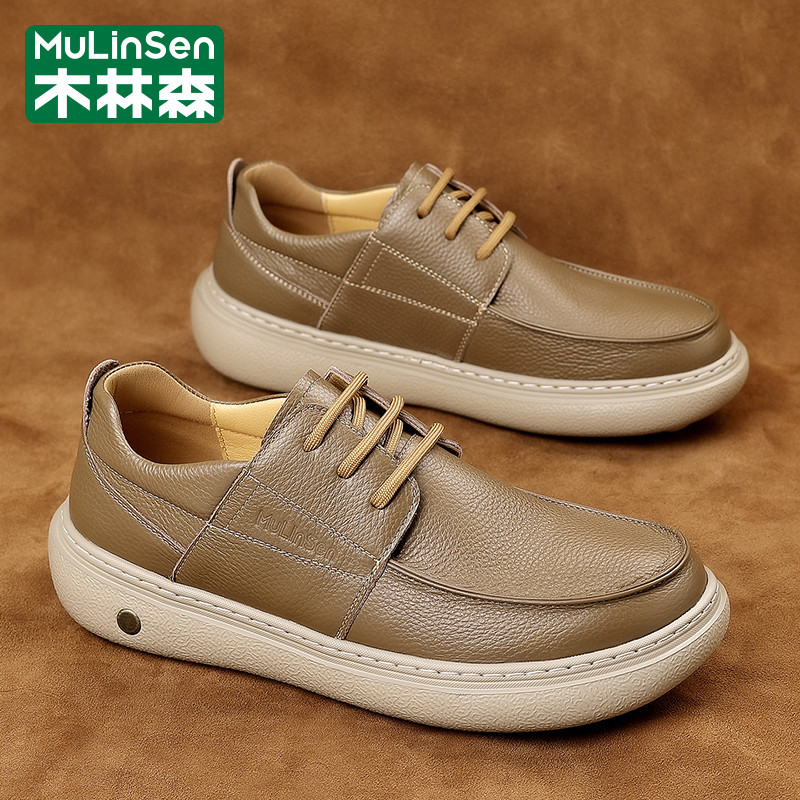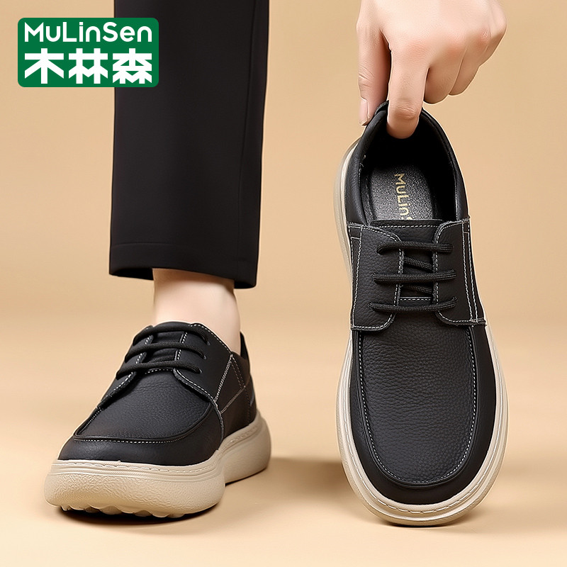 木林森皮鞋男2025新款冬季头层牛皮休闲商务乐福豆豆爸爸软底板鞋
