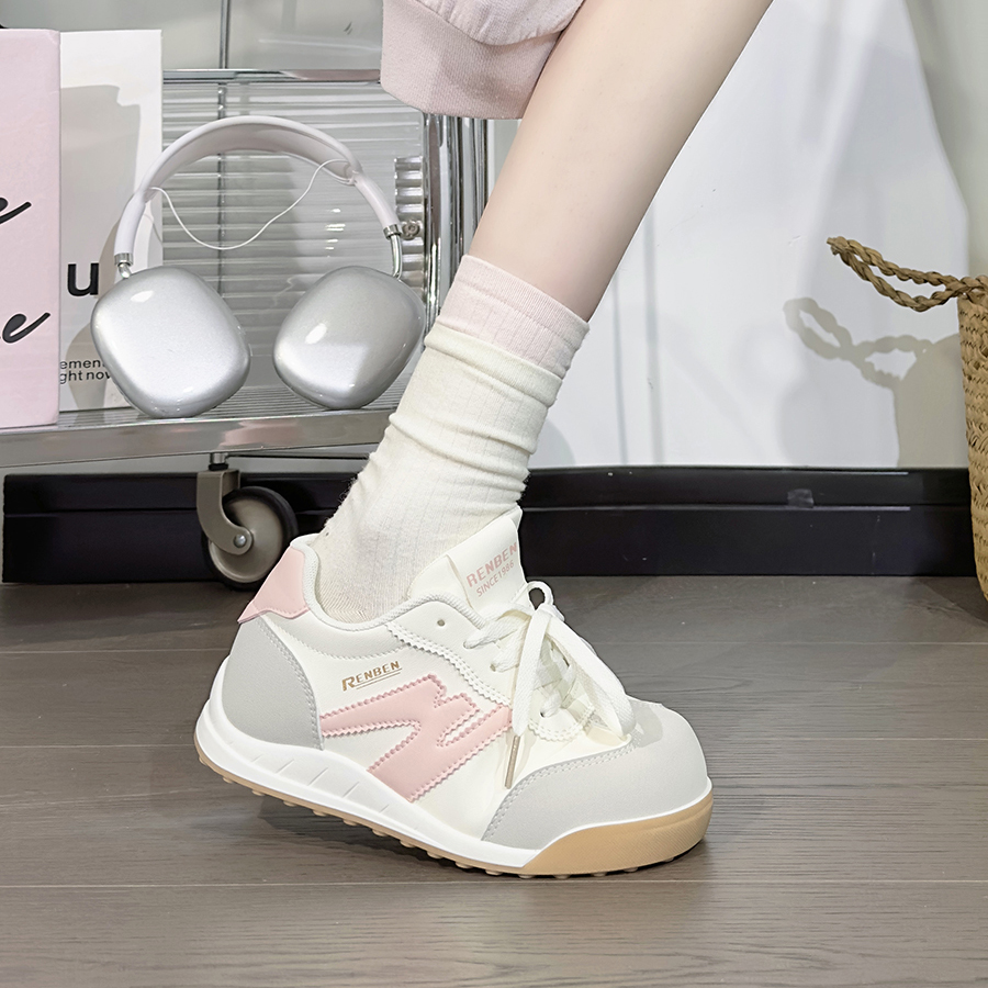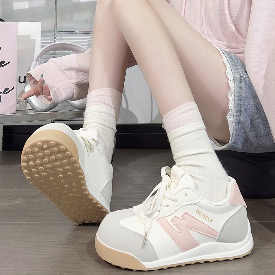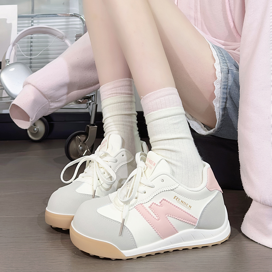 人本樱花粉德训鞋女2025新款小众设计感休闲鞋高颜值通勤韩版板鞋