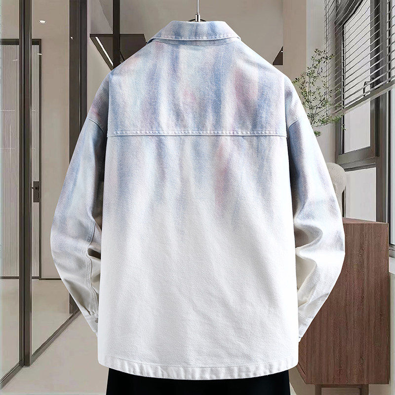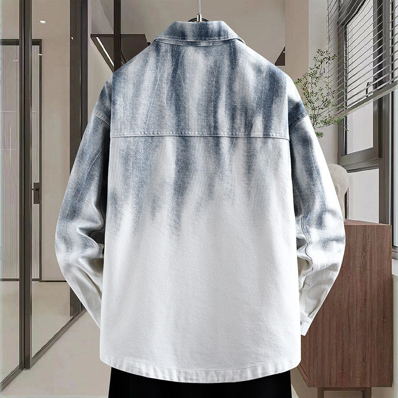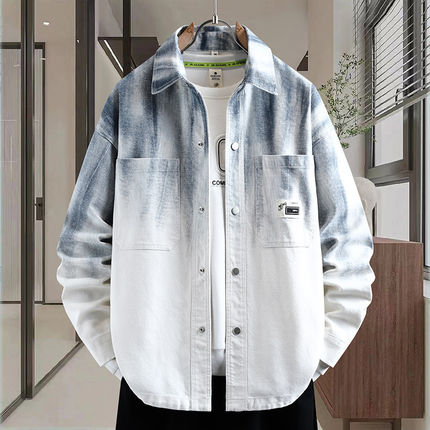 2026春上新青少年时尚翻领渐变色牛仔外套双口袋设计潮流男生夹克