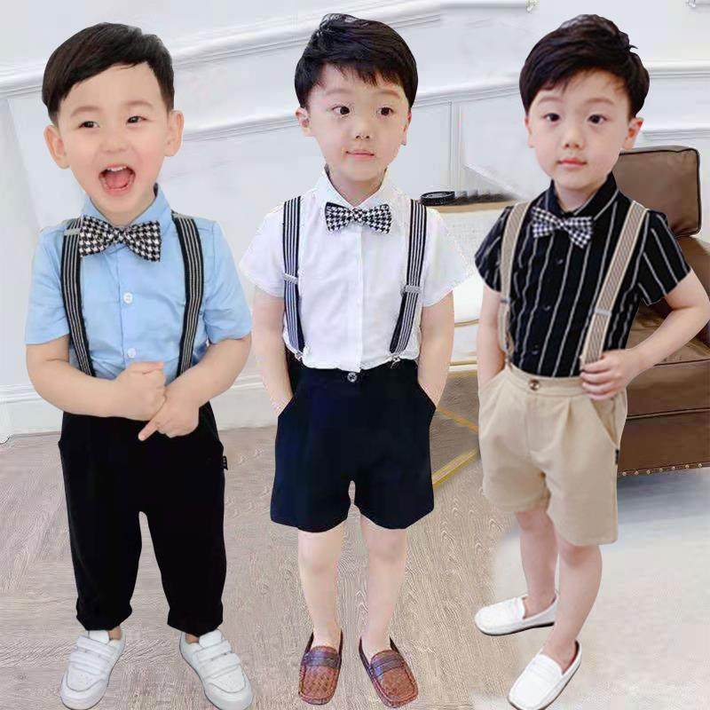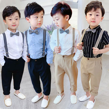 儿童礼服男童背带裤春夏套装花童主持人钢琴演R出服生日宴休闲西