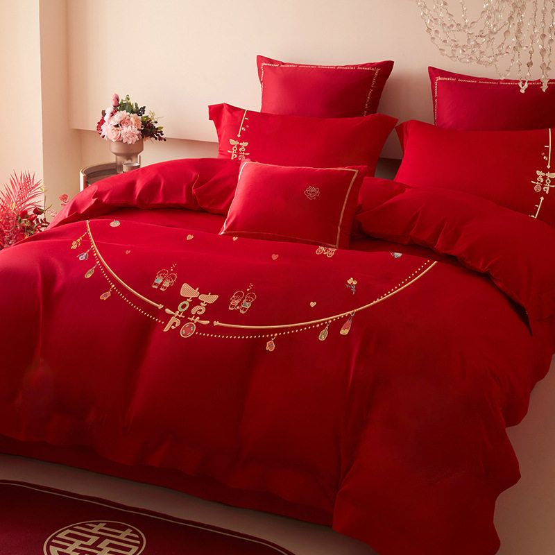 多喜爱美眠康轻奢四件套纯棉婚庆床单被套结婚刺绣床上用品高级感