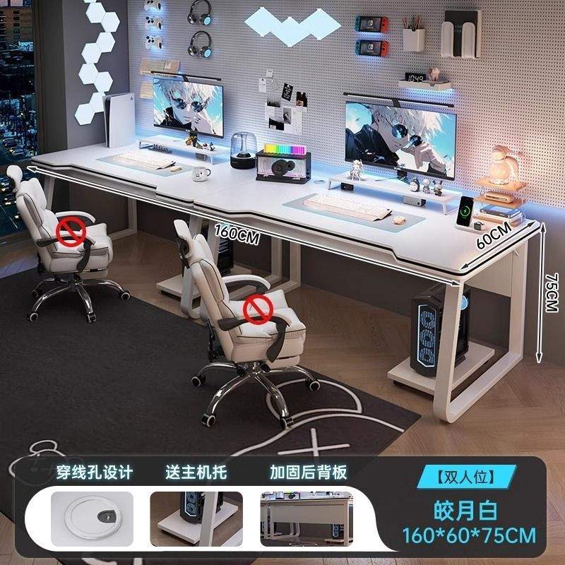 双人电脑桌台式卧室家用长条书桌情侣并排电竞桌套装简易办公桌子