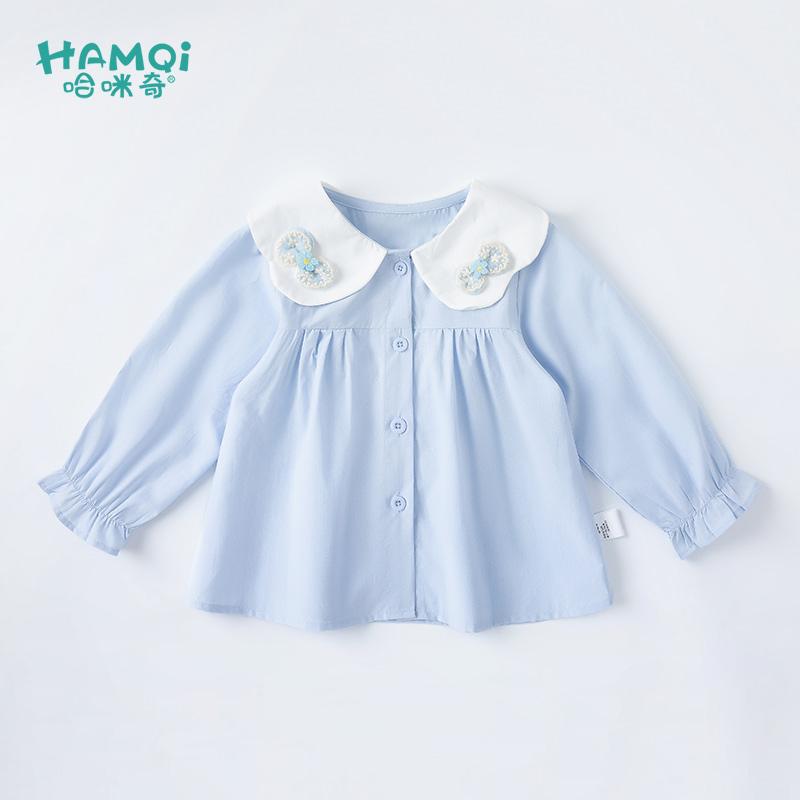 哈咪奇洋气百搭大翻领纯棉衬衫