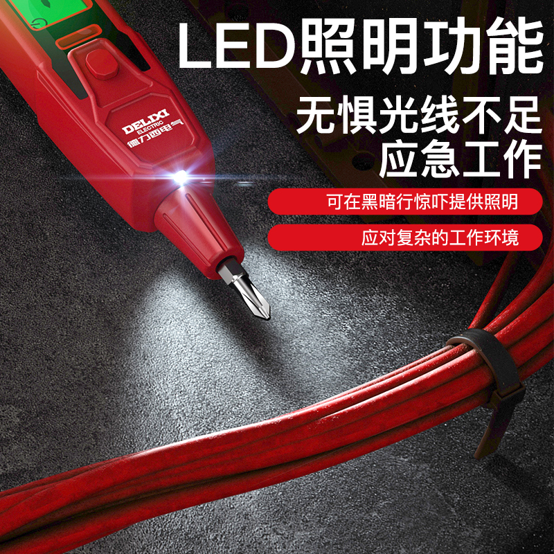 德力西电气电笔电工专用测断线漏电新款多功能智能数显电压试电笔