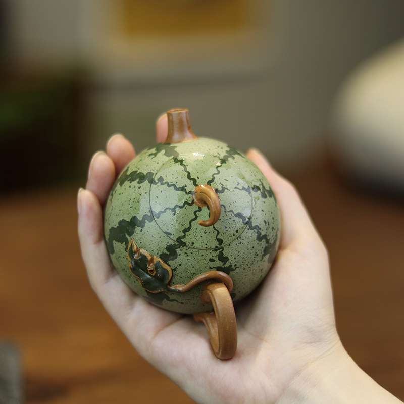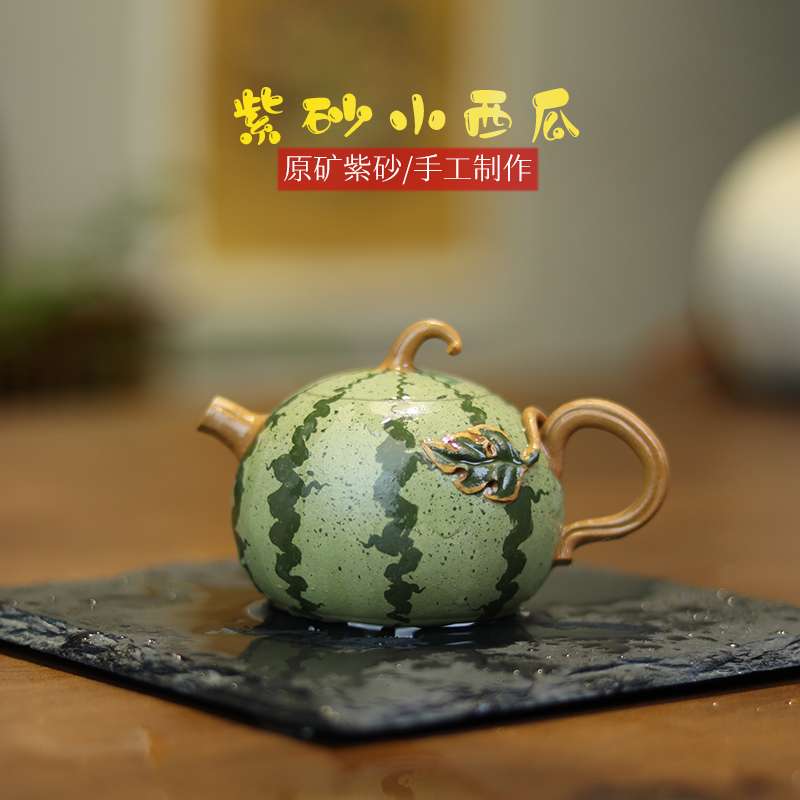 亦合紫砂西瓜壶花器茶壶手工原矿可养 仿生小品泡茶壶薄胎套装