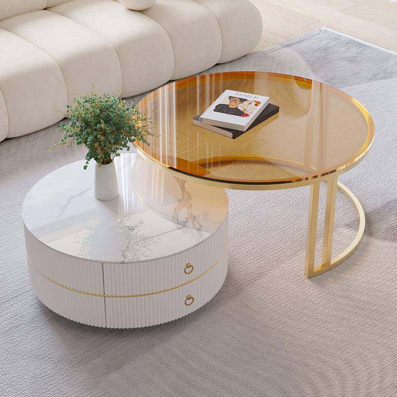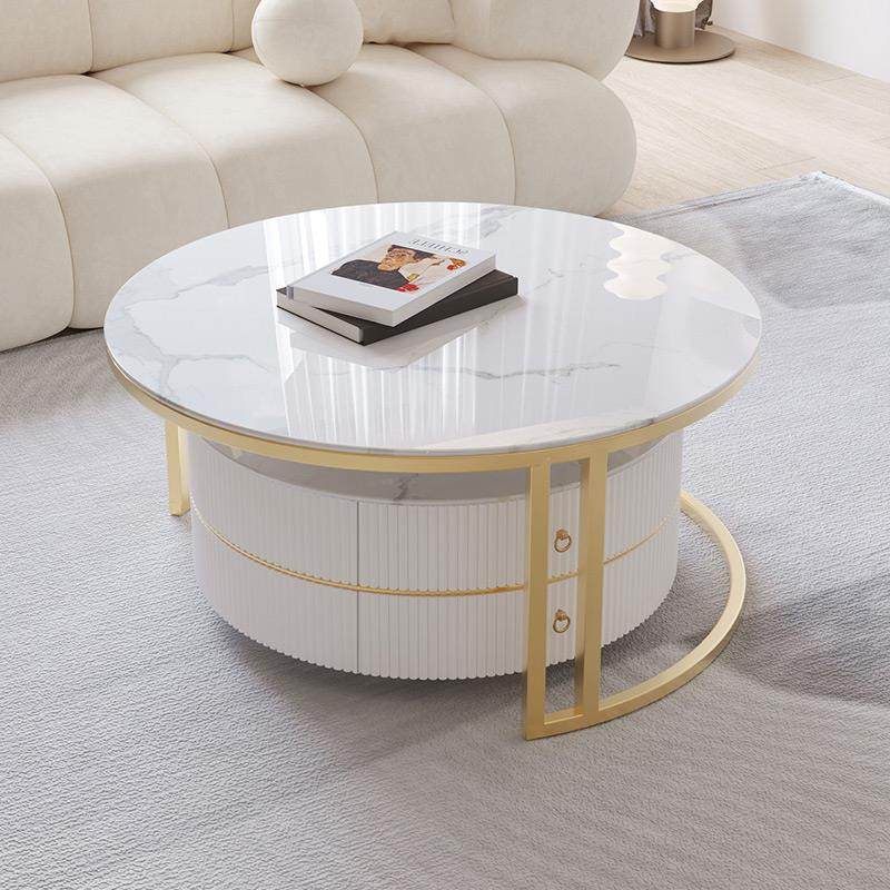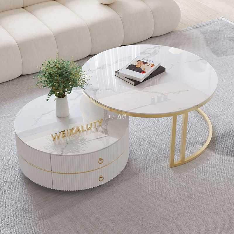 奶油茶几奢现代简约岩板形客厅F969H6MJ圆桌子风家用小户型玻璃轻