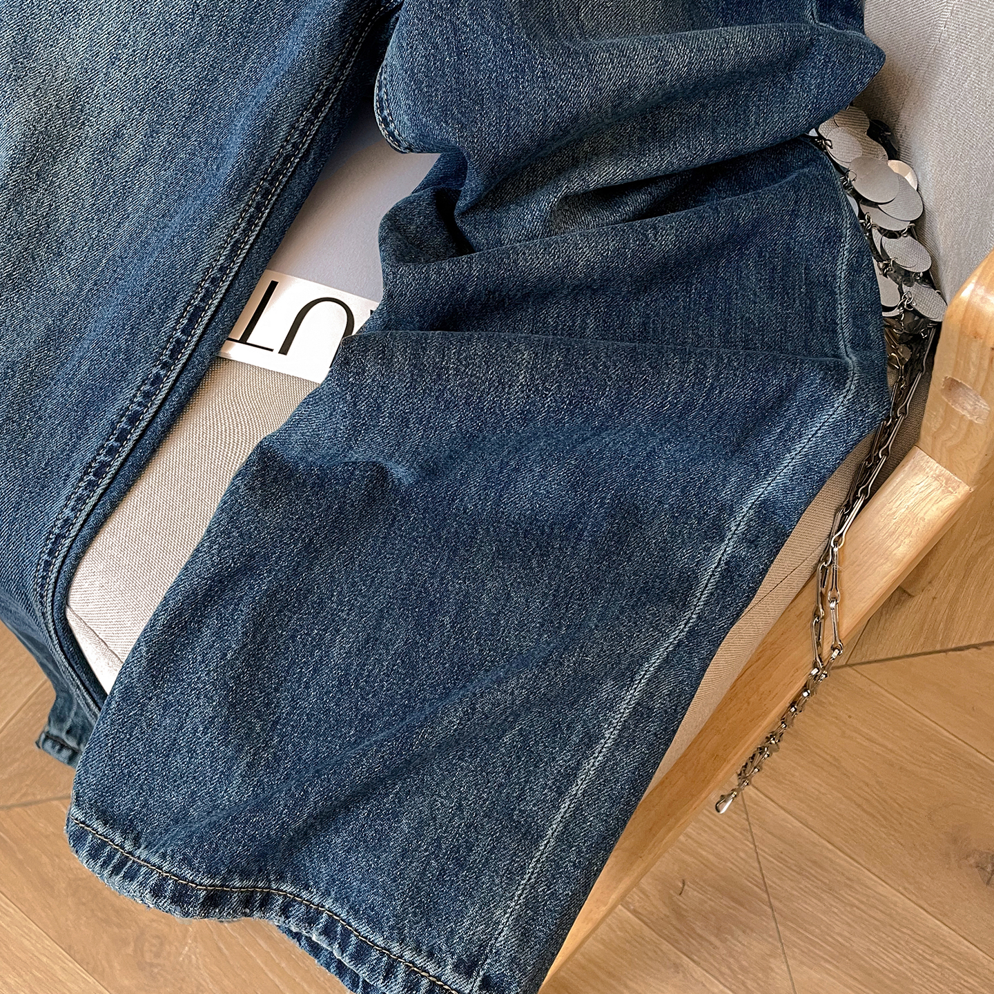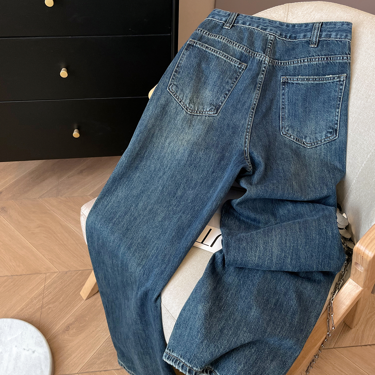 小C家 复古蓝色直筒牛仔裤女2025新款秋季高腰宽松显瘦休闲拖地裤