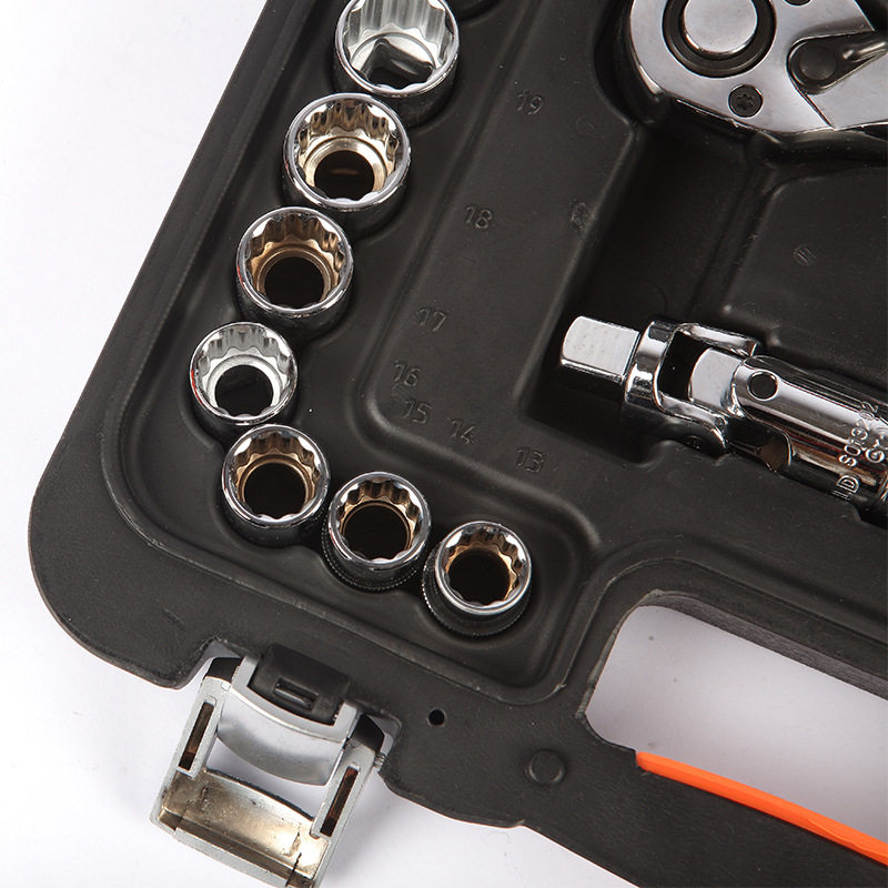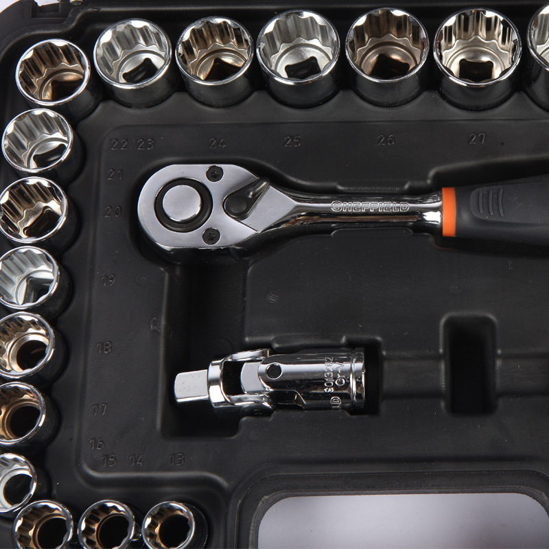 钢盾S010026 26件套12.5mm系列公制12角套筒扳手套装棘轮扳手组套