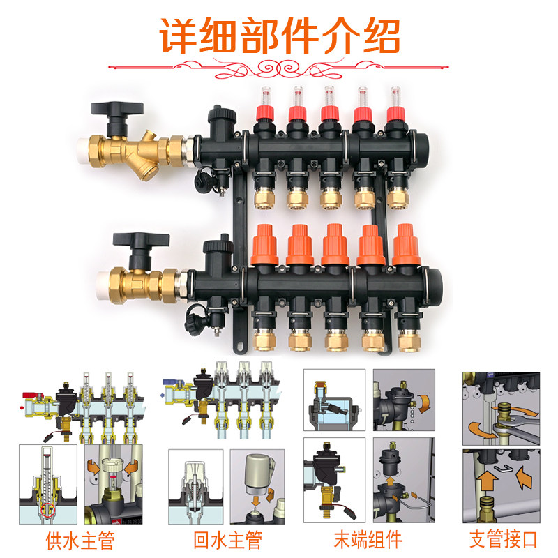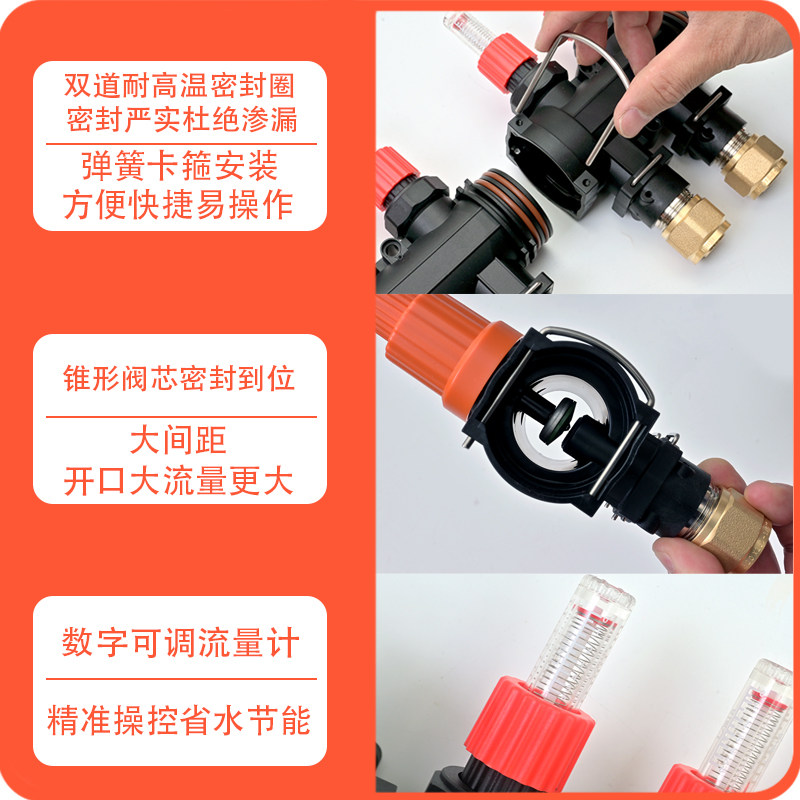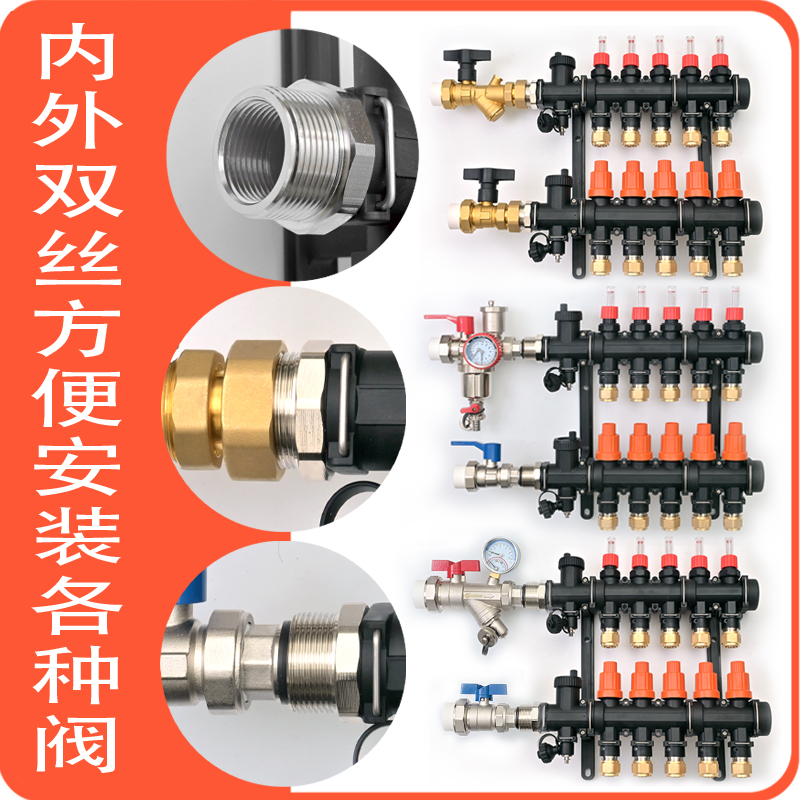 空气能地热高密度尼龙地暖分集水器大流量分水器地热可视流量调控