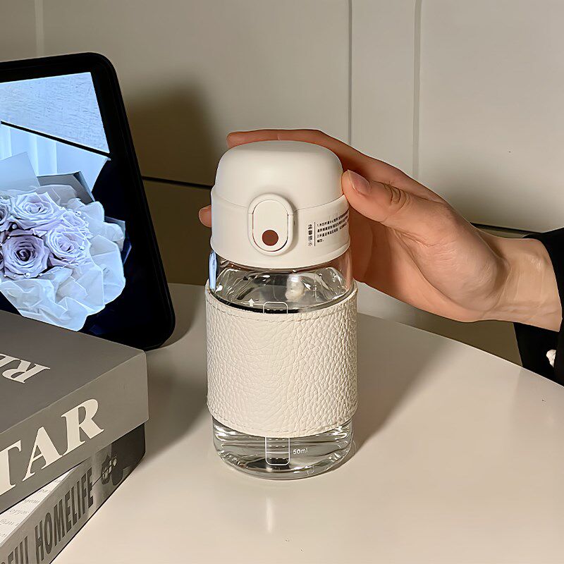 夏季吸管玻璃杯女生办公室透明便携水杯高硼硅耐高温耐热刻度杯子