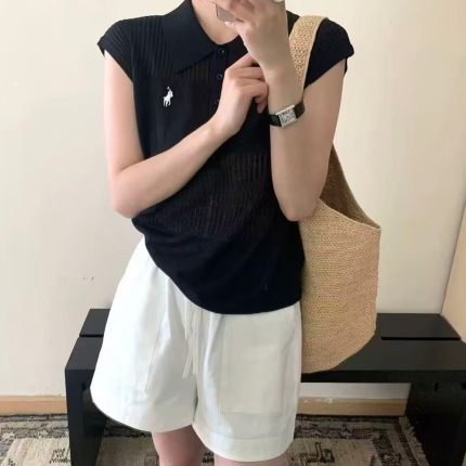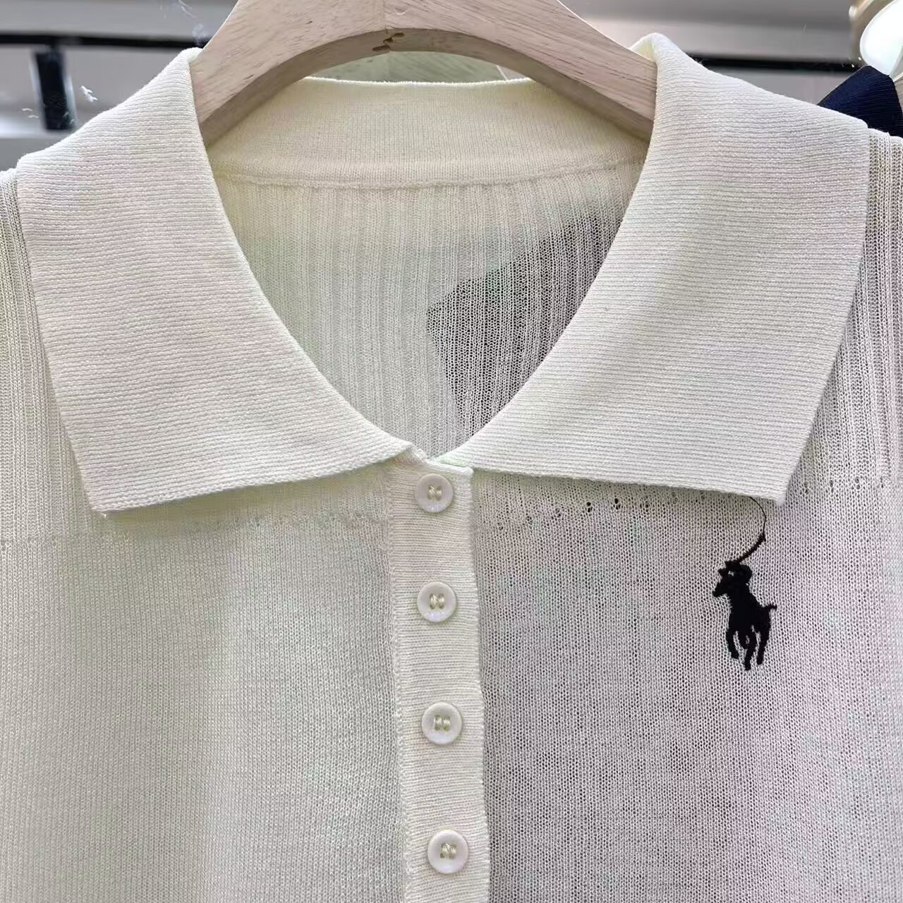 刺绣翻领短袖针织衫女夏季新款宽松显瘦百搭休闲微透毛衣0.17