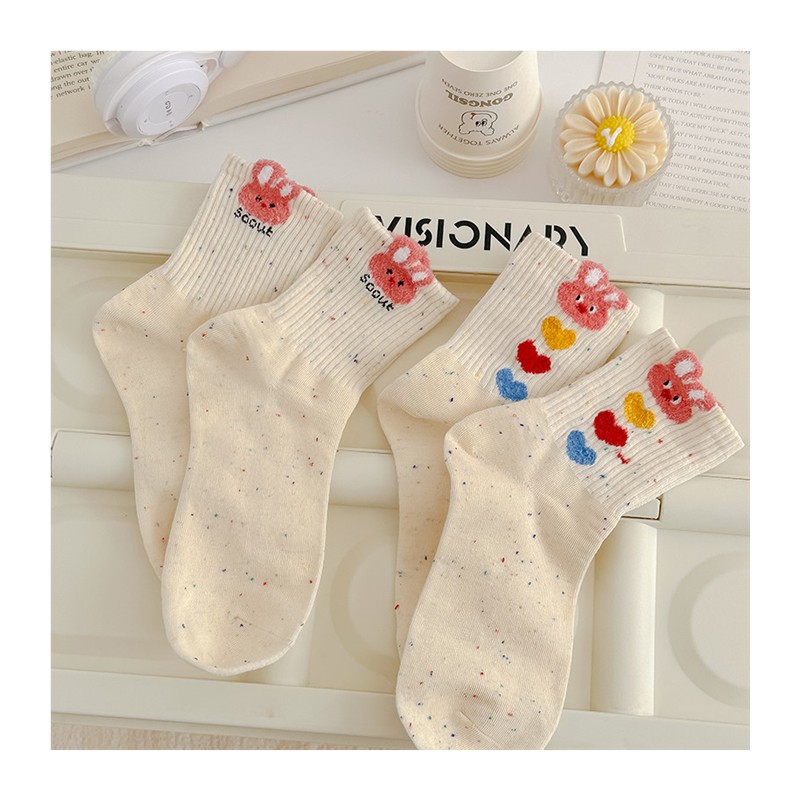 袜子女点子纱可爱小兔中筒袜春秋卡通韩版学院风秋冬透气百搭运动