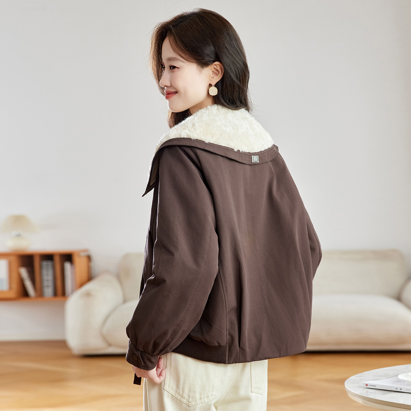 加绒加厚秋冬外套女2025冬季新款小个子洋气翻领设计保暖派克棉服