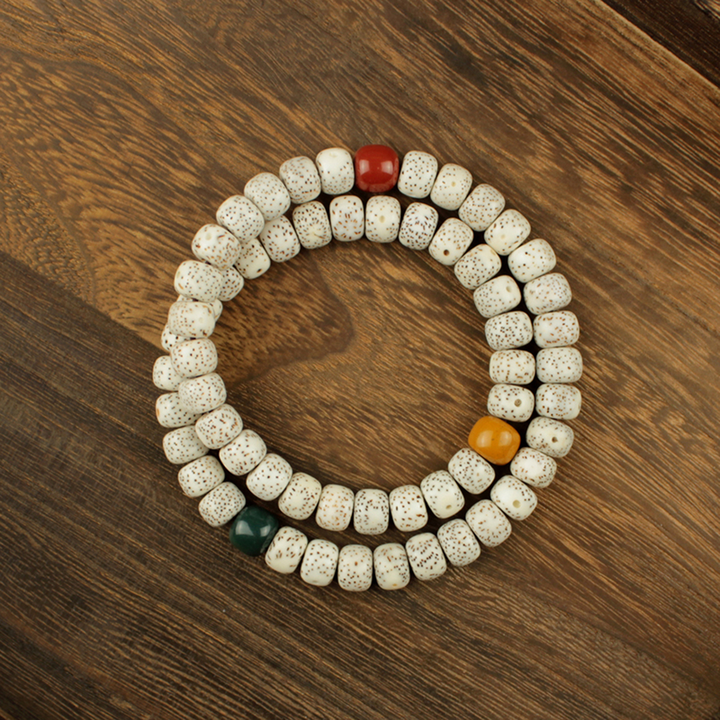 精品海南原生态星月菩提手串双圈手持正月高密顺白文玩佛珠手链