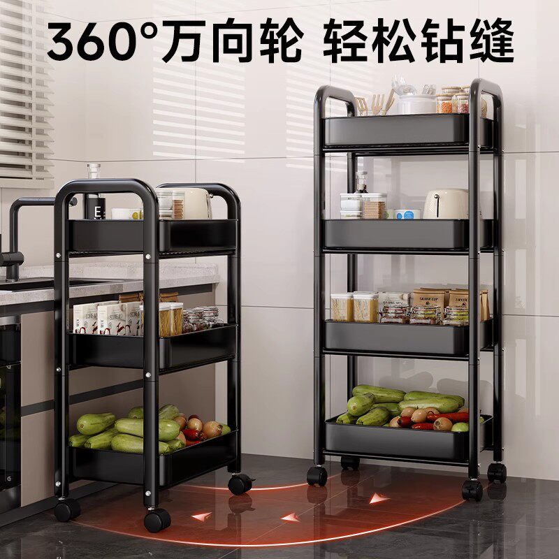 厨房置物架多功能小推车家用落地夹缝窄移动零食冰箱侧果蔬收纳架