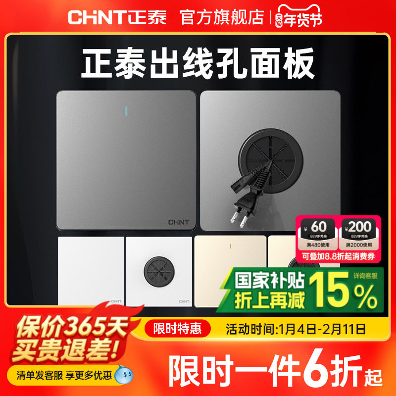 正泰开关插座空白面板遮挡遮丑填空盖板带出线孔电视网线穿孔挡板