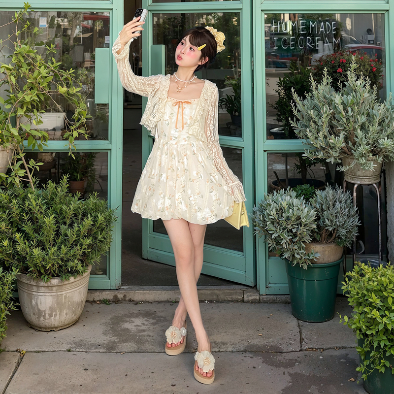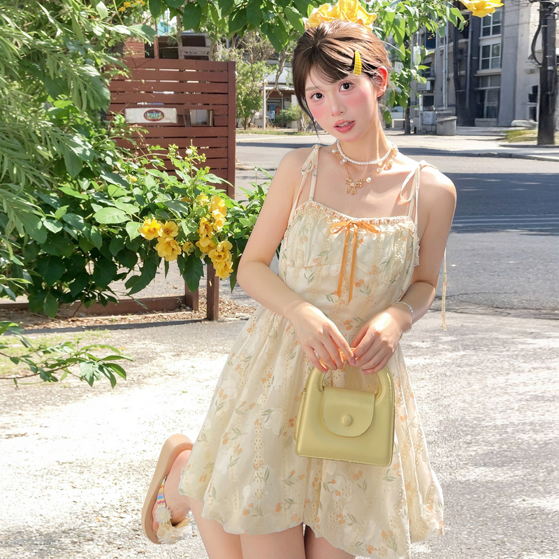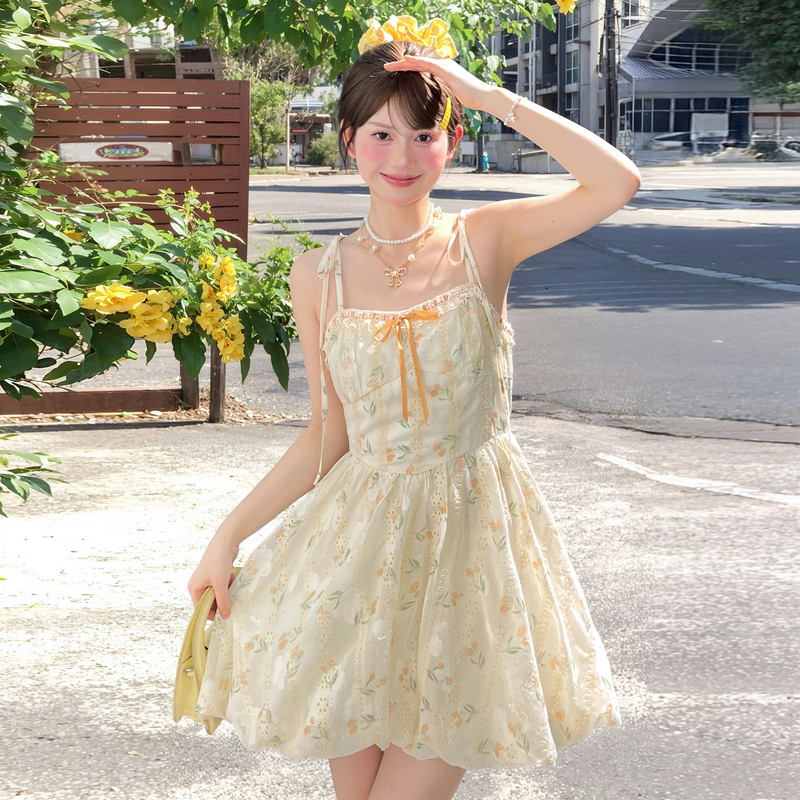 森女部落原创甜美度假风气质收腰吊带裙连衣裙女小个子花苞裙夏季