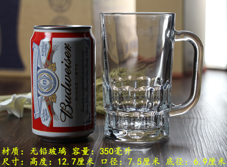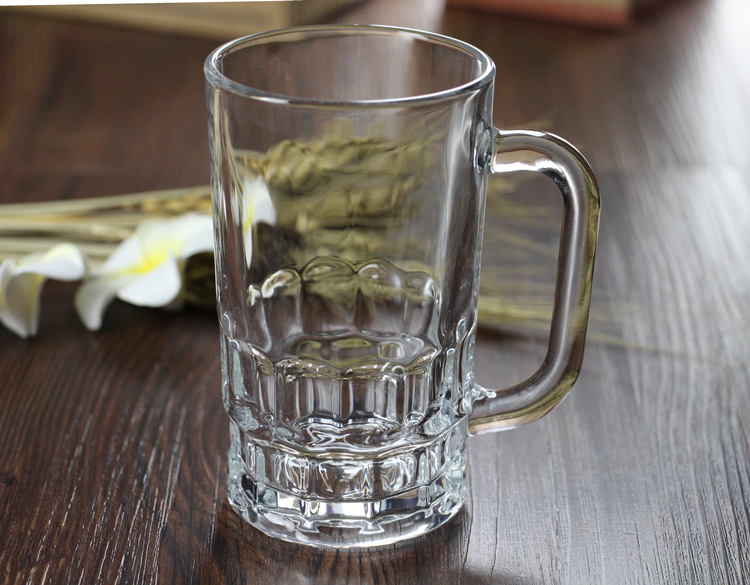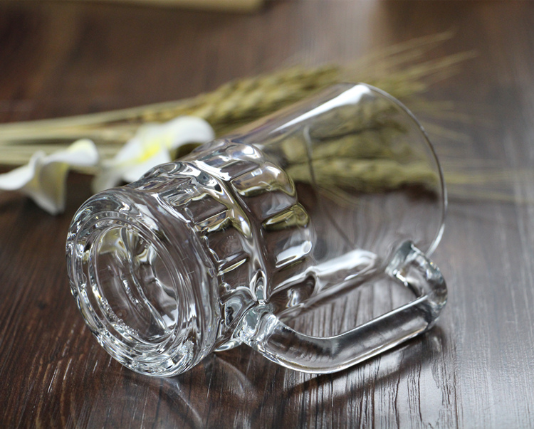 丽尊方纹透明无铅玻璃啤酒把杯扎啤杯带把手茶杯水杯牛奶杯果汁杯