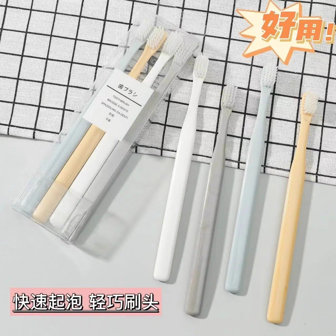马卡龙四支装大情侣清洁牙龈牙刷高档次软毛日式成人手动小头旅行
