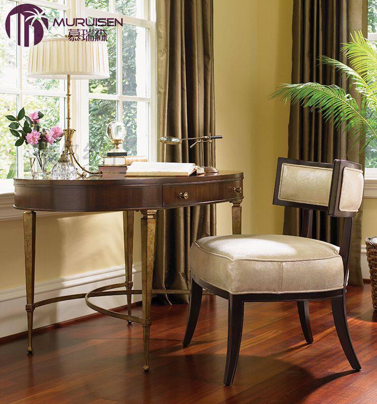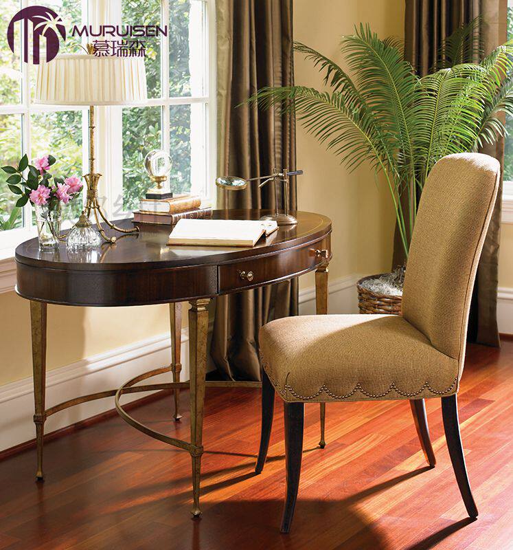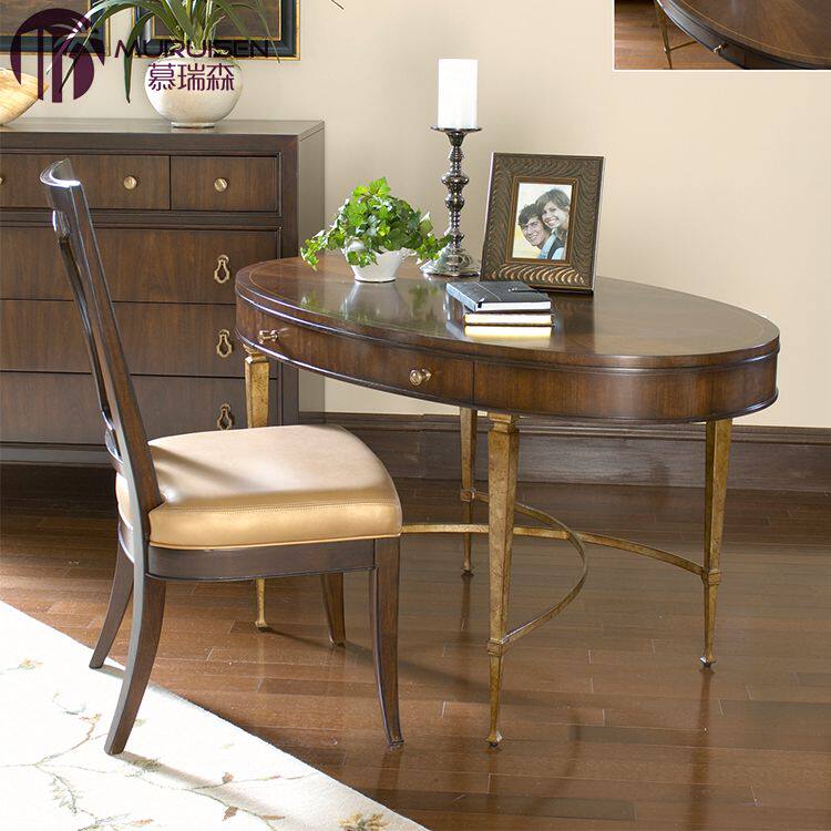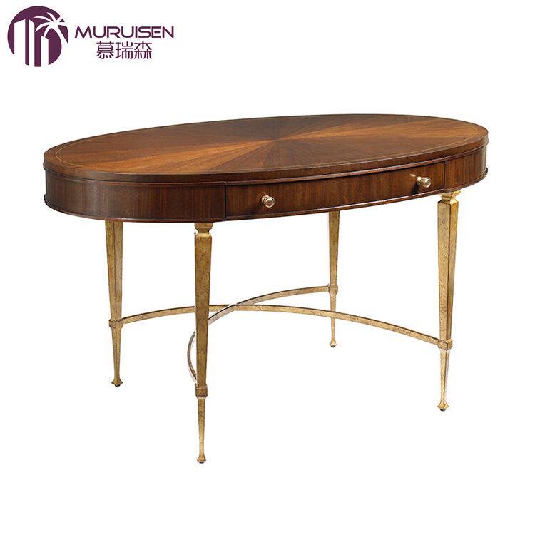美式现代简美轻奢椭圆书桌新古典金属儿童电脑桌时尚书房写字桌
