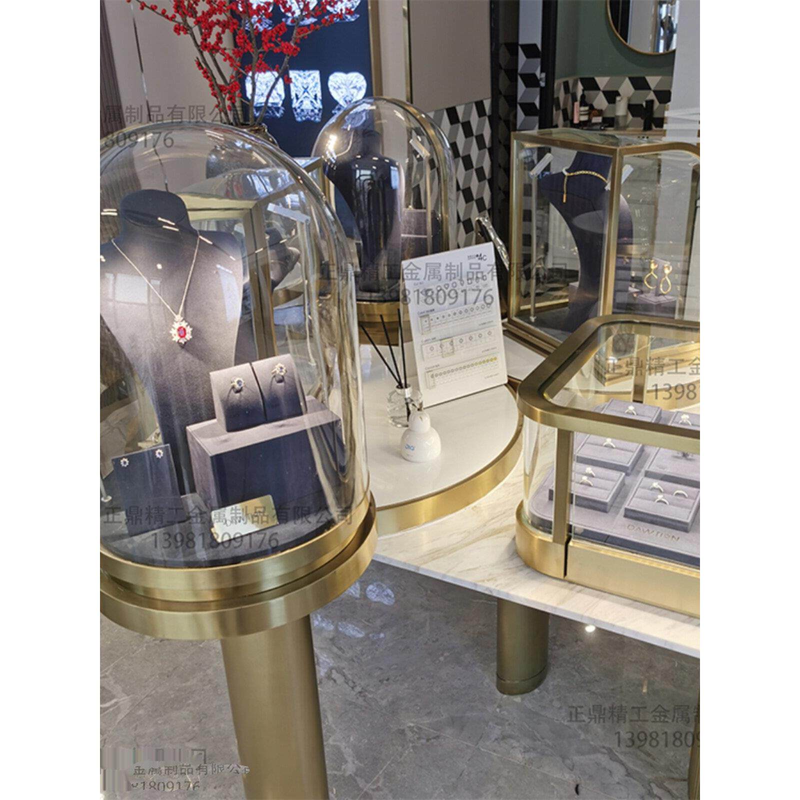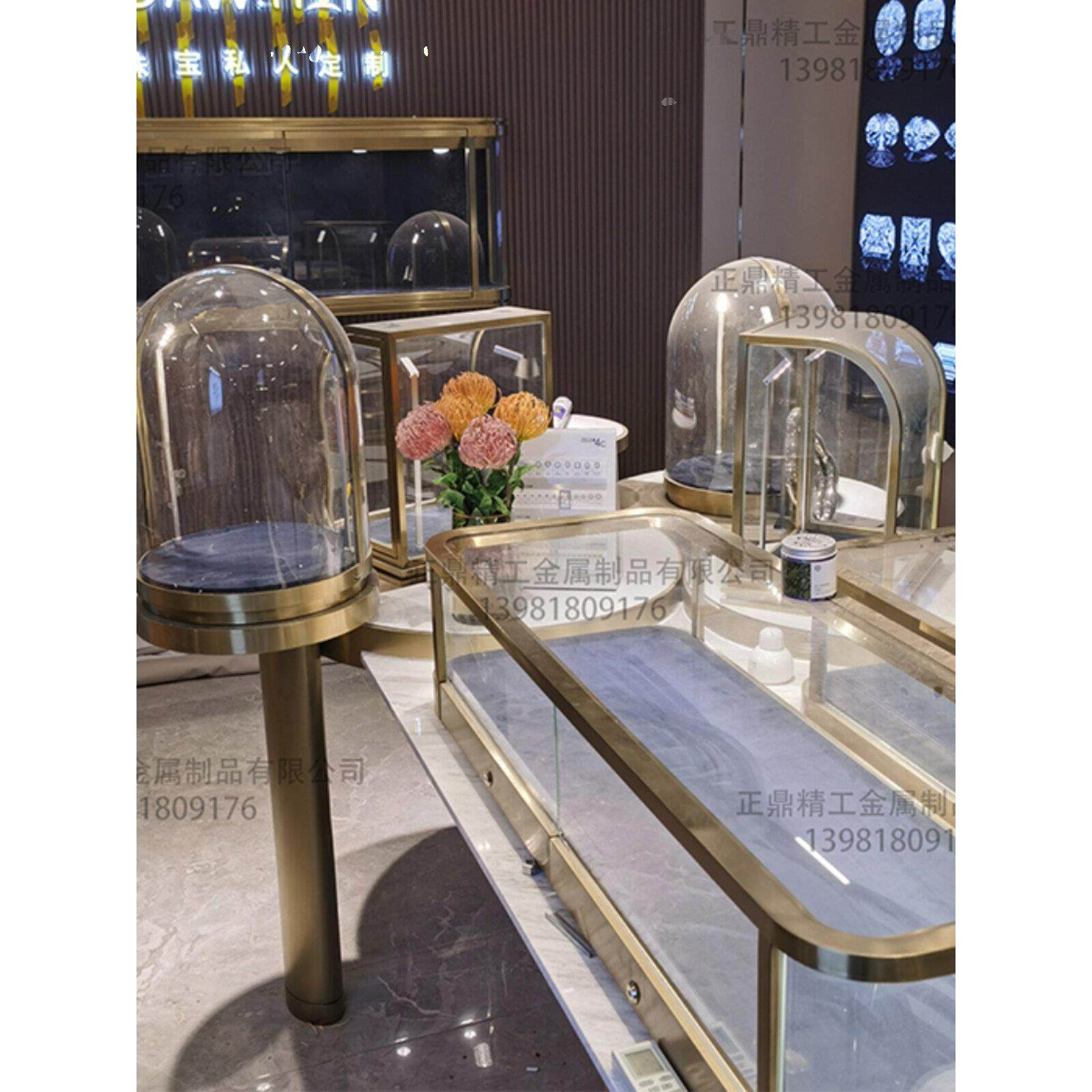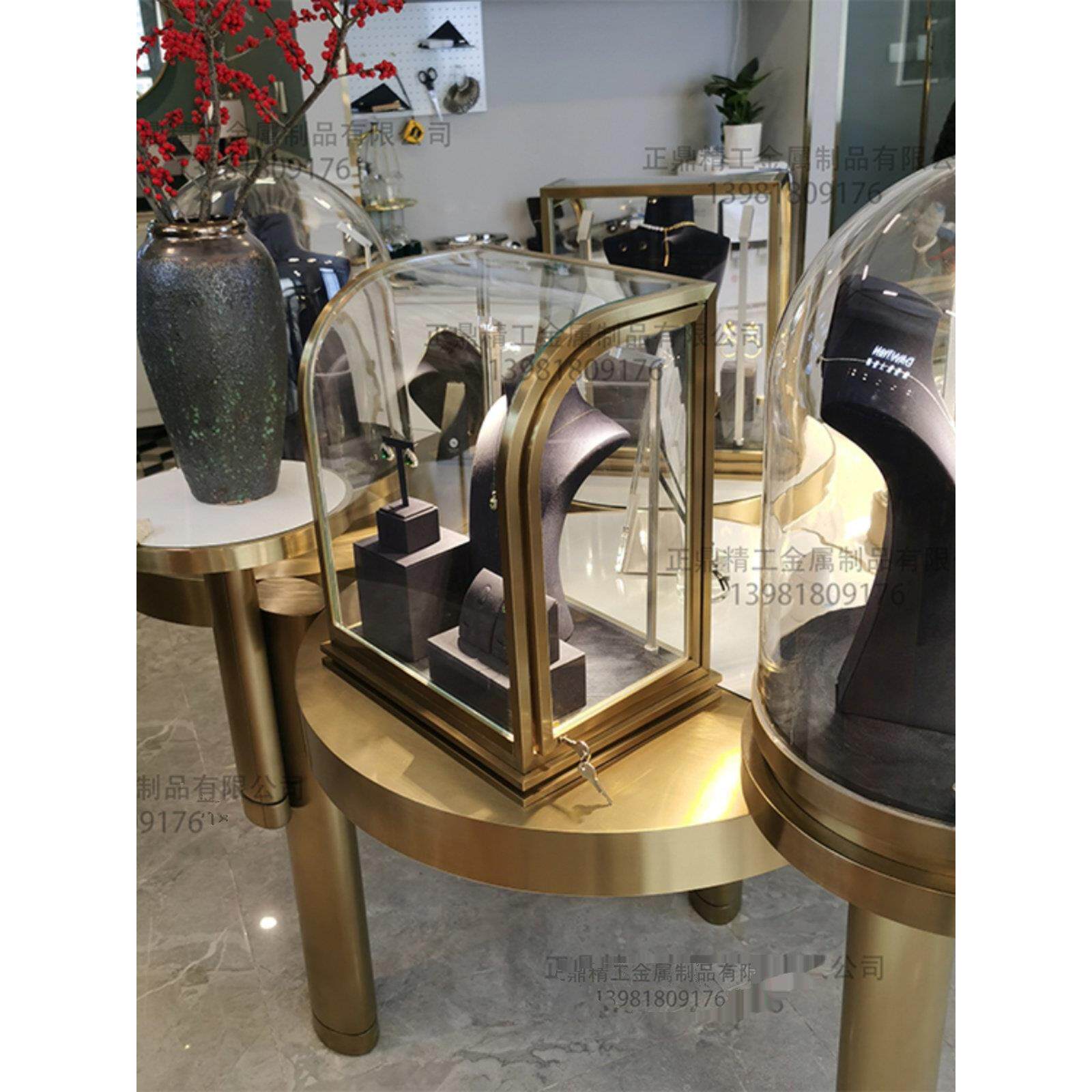高级圆弧形珠宝展示柜黄金首饰玻璃翡翠玉器摆件产品陈列柜不锈钢