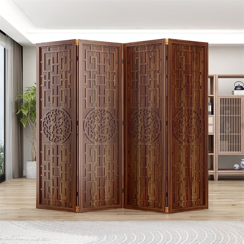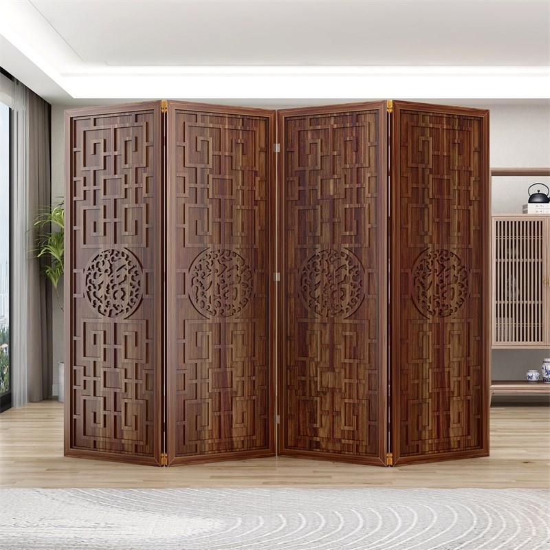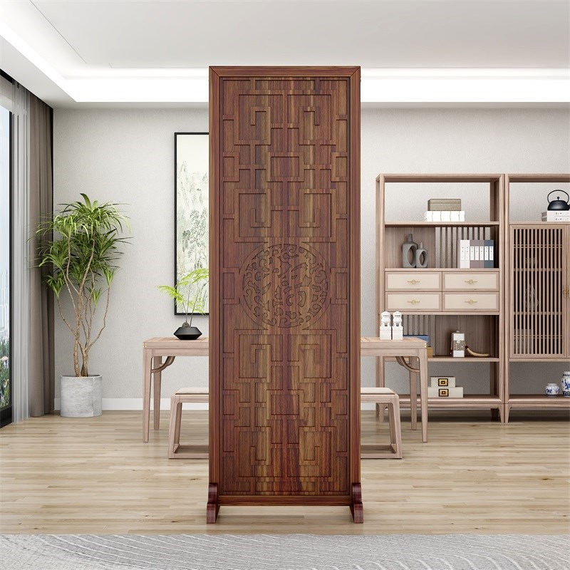 新中式木质屏风隔断客厅办公x室玄关折屏现代简约格栅福字装饰座