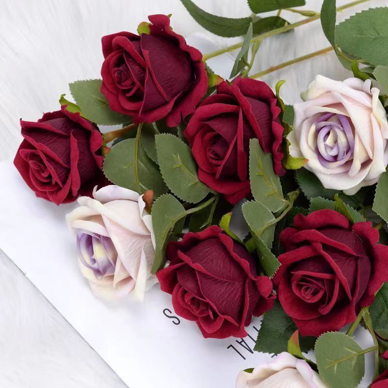 客厅装饰鲜花摆件插花餐桌支酒红色仿真干花玫瑰花花束摆放花朵