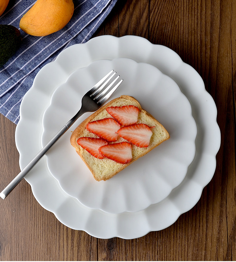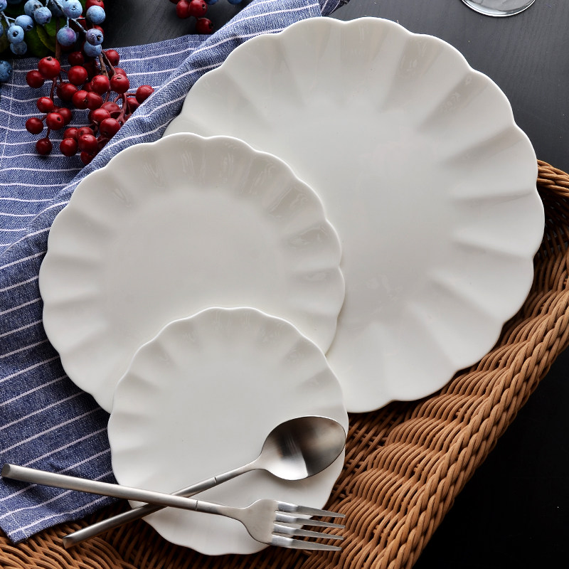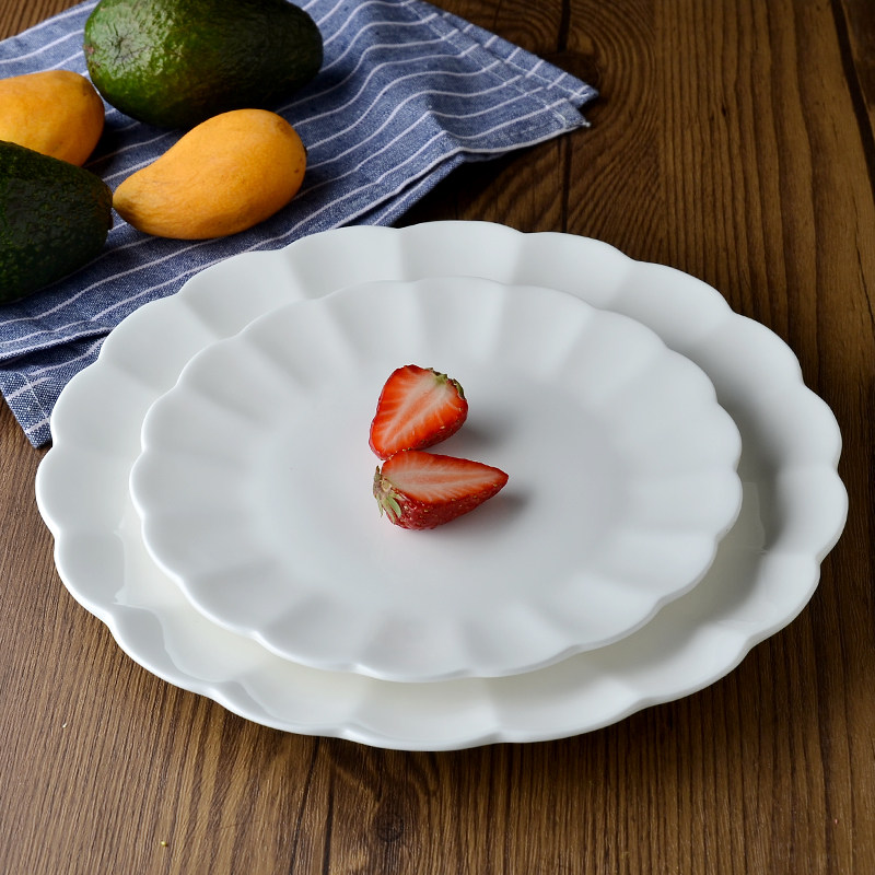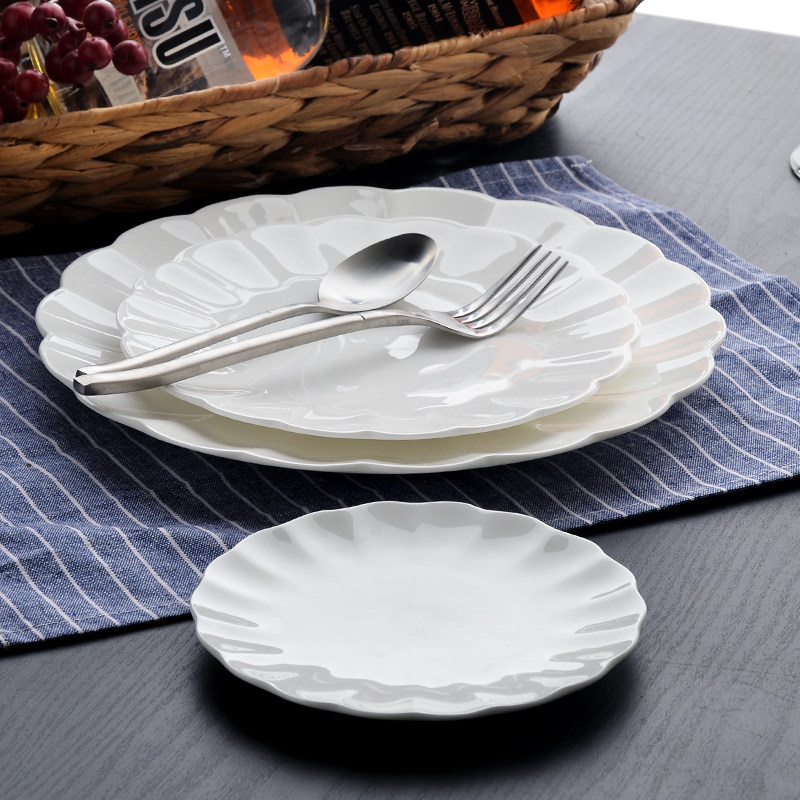 金四方骨质瓷花瓣水果盘平盘餐盘牛排盘骨碟纯白骨瓷菜盘家用