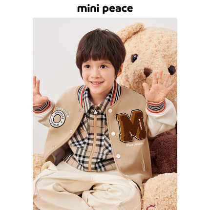 【专柜同款】MINIPEACE太平鸟童装男童棒球夹克棕色秋装儿童外套