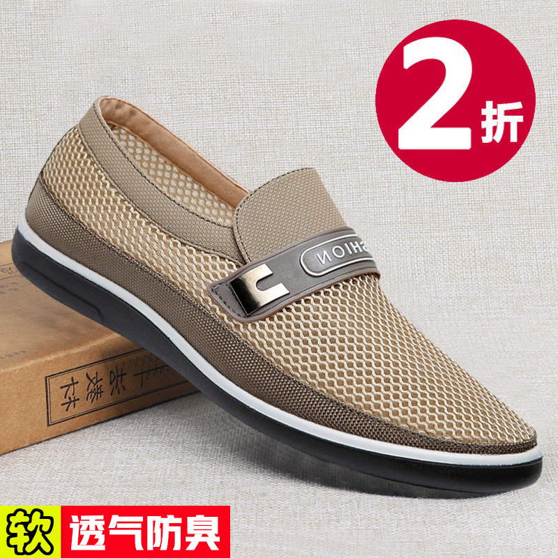 老北京布鞋男网面鞋夏季透气镂空休闲鞋舒适防滑软底中老年爸爸鞋