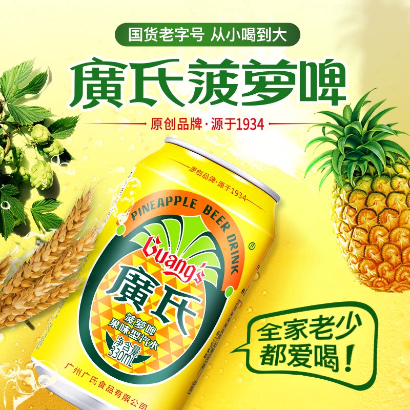 广氏菠萝啤330ml听装菠萝果味啤酒夏季气泡水0酒精碳酸饮料