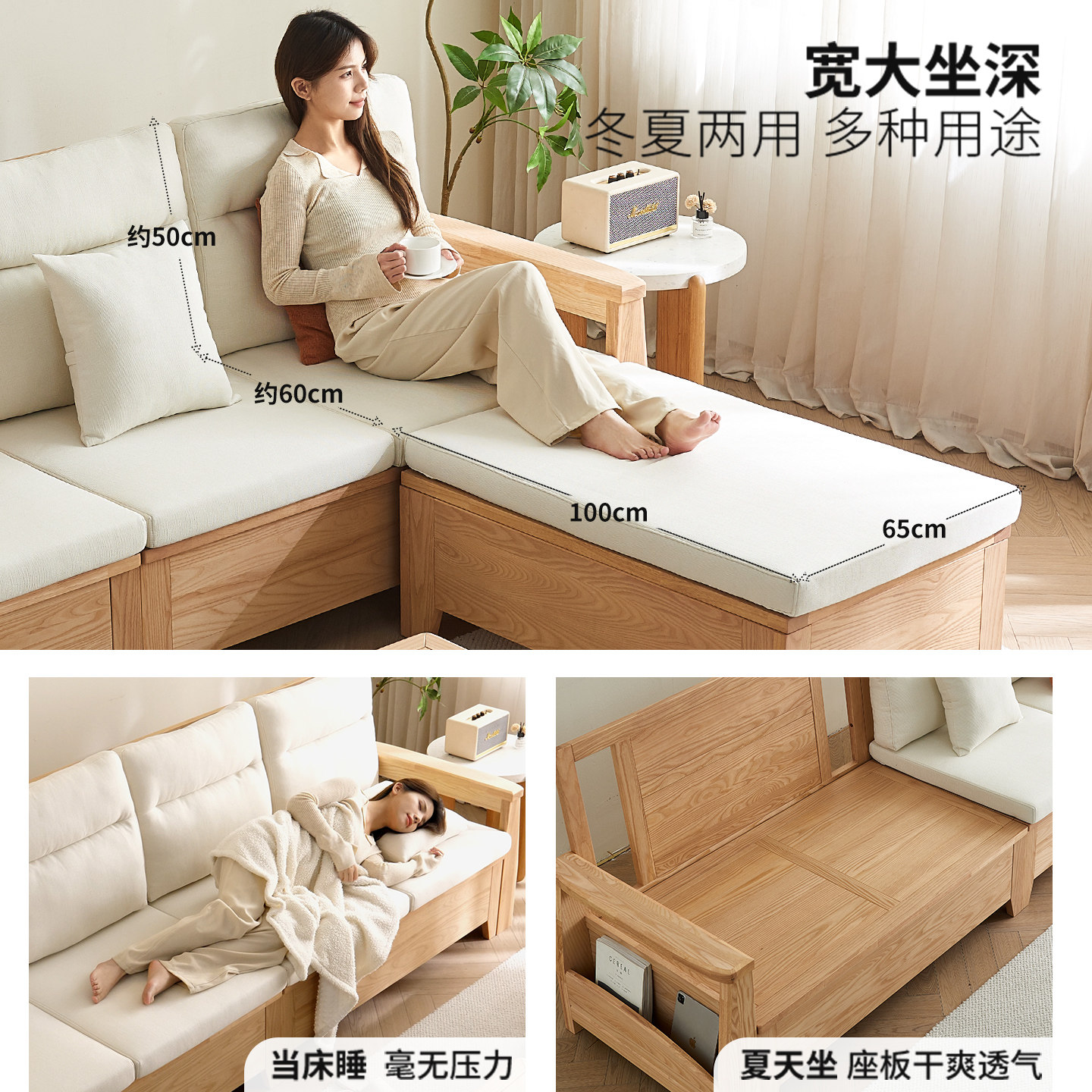 优尚雅轩北欧日式白蜡木全实木沙发现代简约原木冬夏两用储物沙发