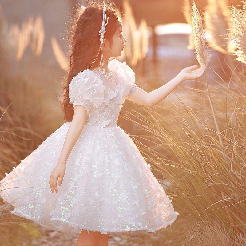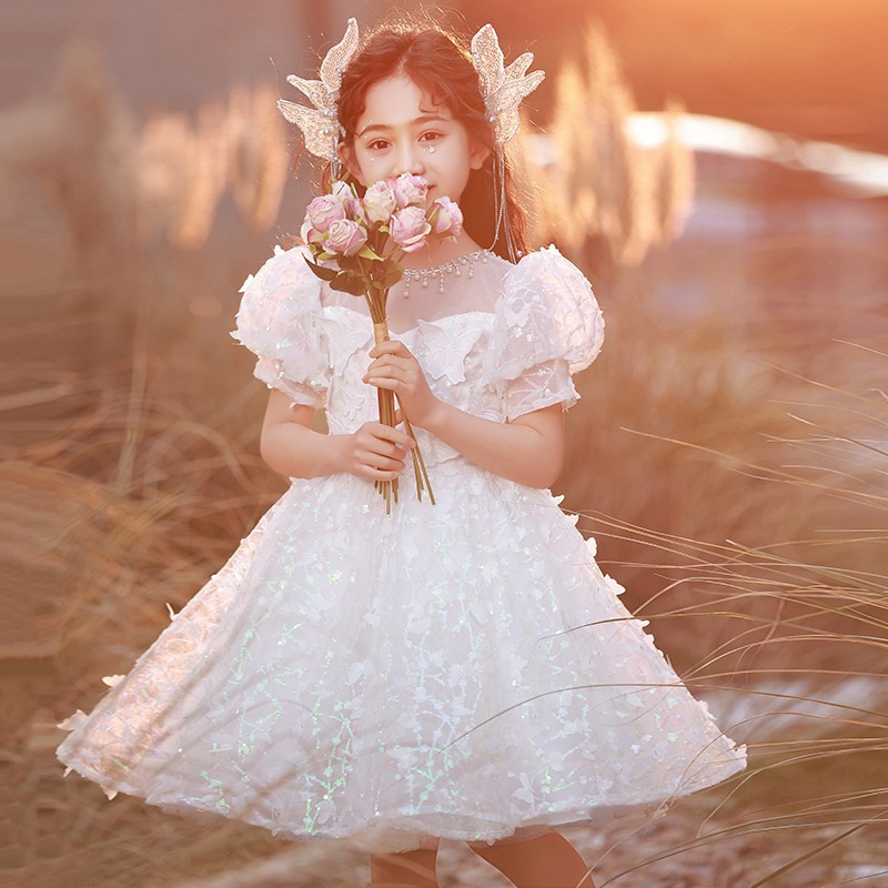 儿童走秀礼服小女孩蝴蝶仙子亮片公主裙开学主持人钢琴演奏演出服