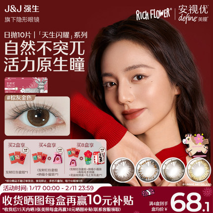 【10片】强生美瞳安视优日抛隐形眼镜棕色妍妍近视大直径自然彩色