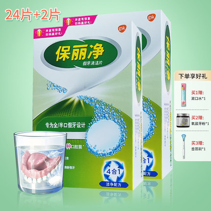保丽净假牙清洁片正畸保持器牙套清洗泡腾片进口宝丽净清洁26片