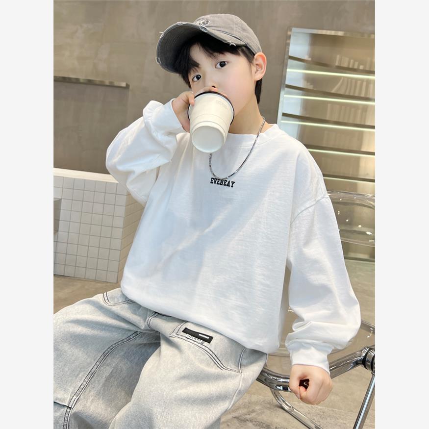 儿童T恤2025新款长袖男童打底衫T恤痞帅气中大童春秋季卫衣打底衫