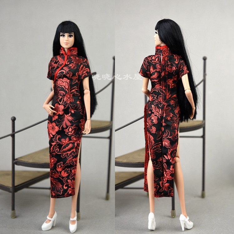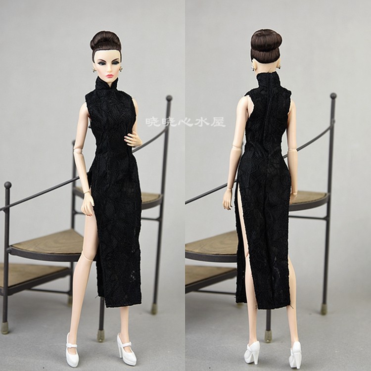 30cm娃娃衣服装 梦凡可儿珍妮超模兵人心怡可穿 黑色白色旗袍