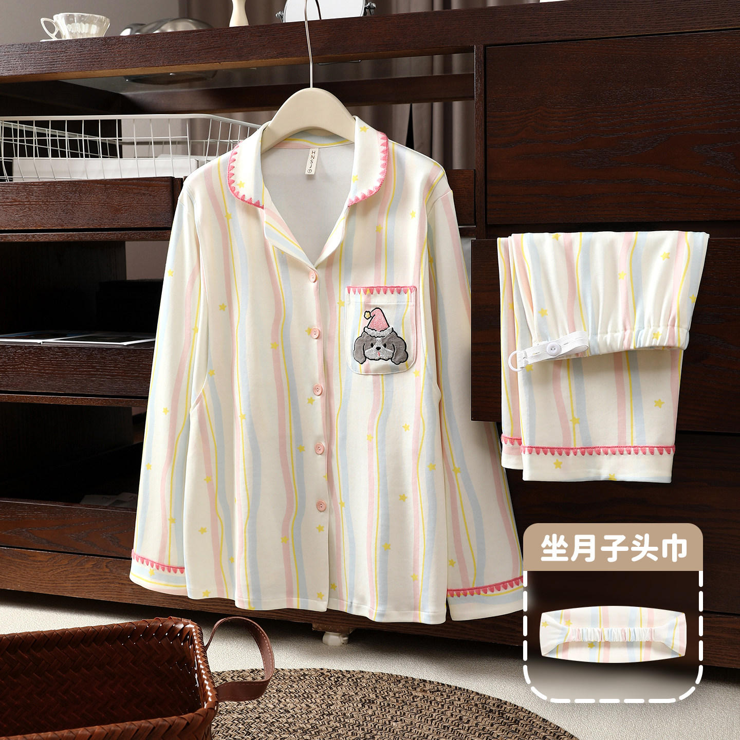 秋冬纯棉带胸垫月子服春秋季产前产后产妇喂奶孕妇哺乳睡衣家居服