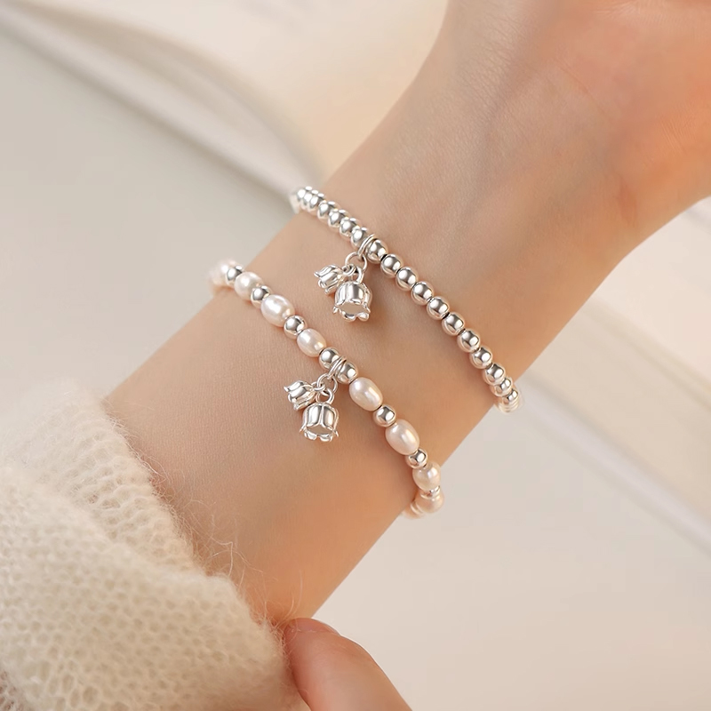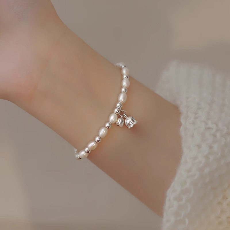 S925银铃兰花珍珠手链女手串闺蜜轻奢小众精致手饰手镯2023年新款