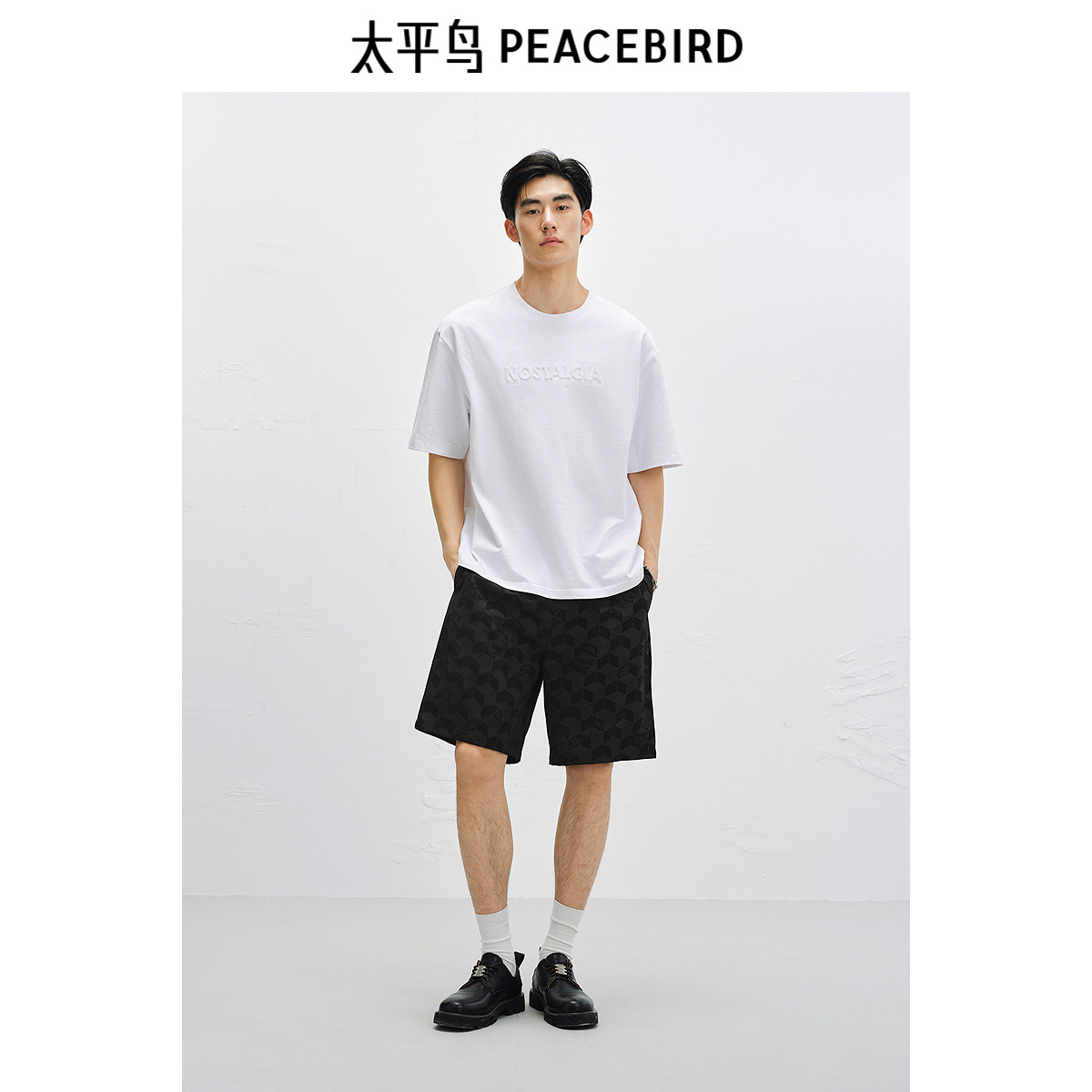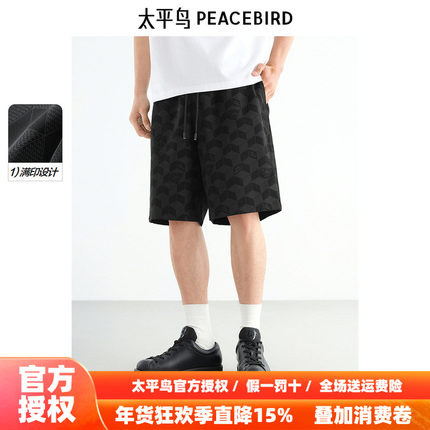 太平鸟男装休闲裤25秋新款宽松直筒运动中短裤满版印花五分裤潮