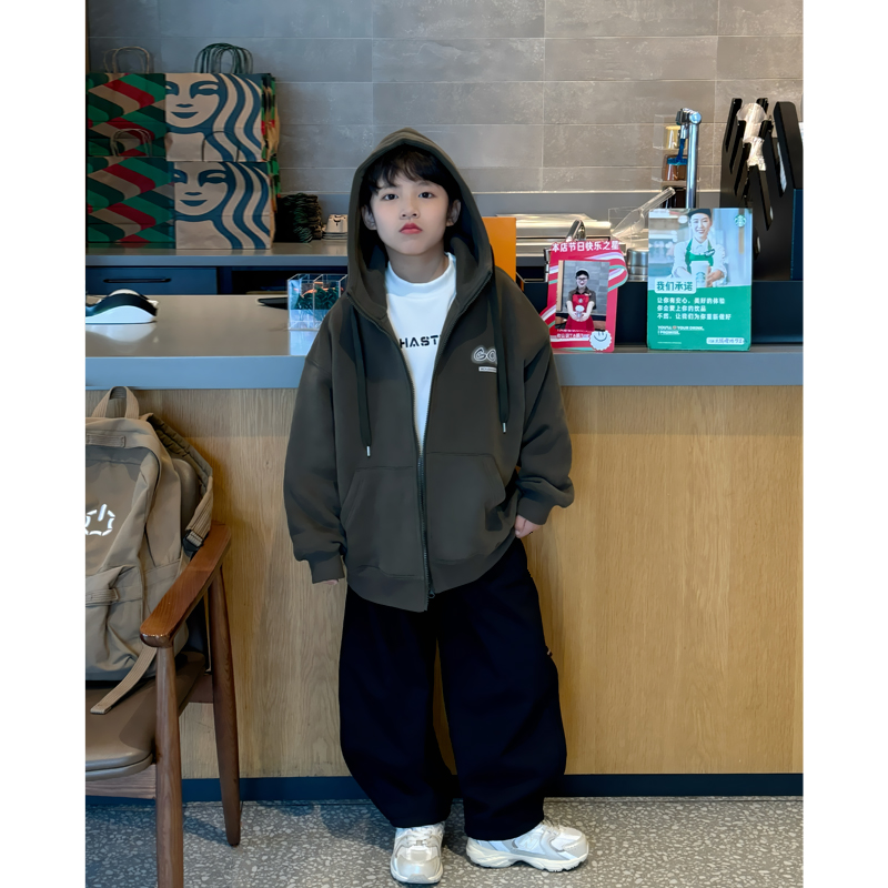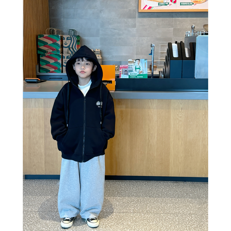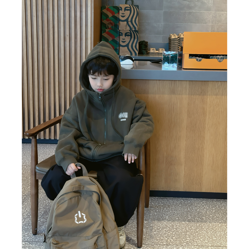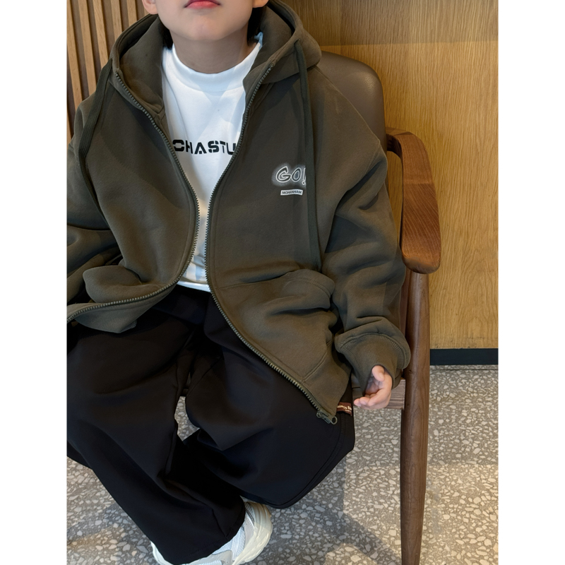 凯文家童装秋冬季新品男童中大童韩版加绒休闲连帽儿童卫衣外套