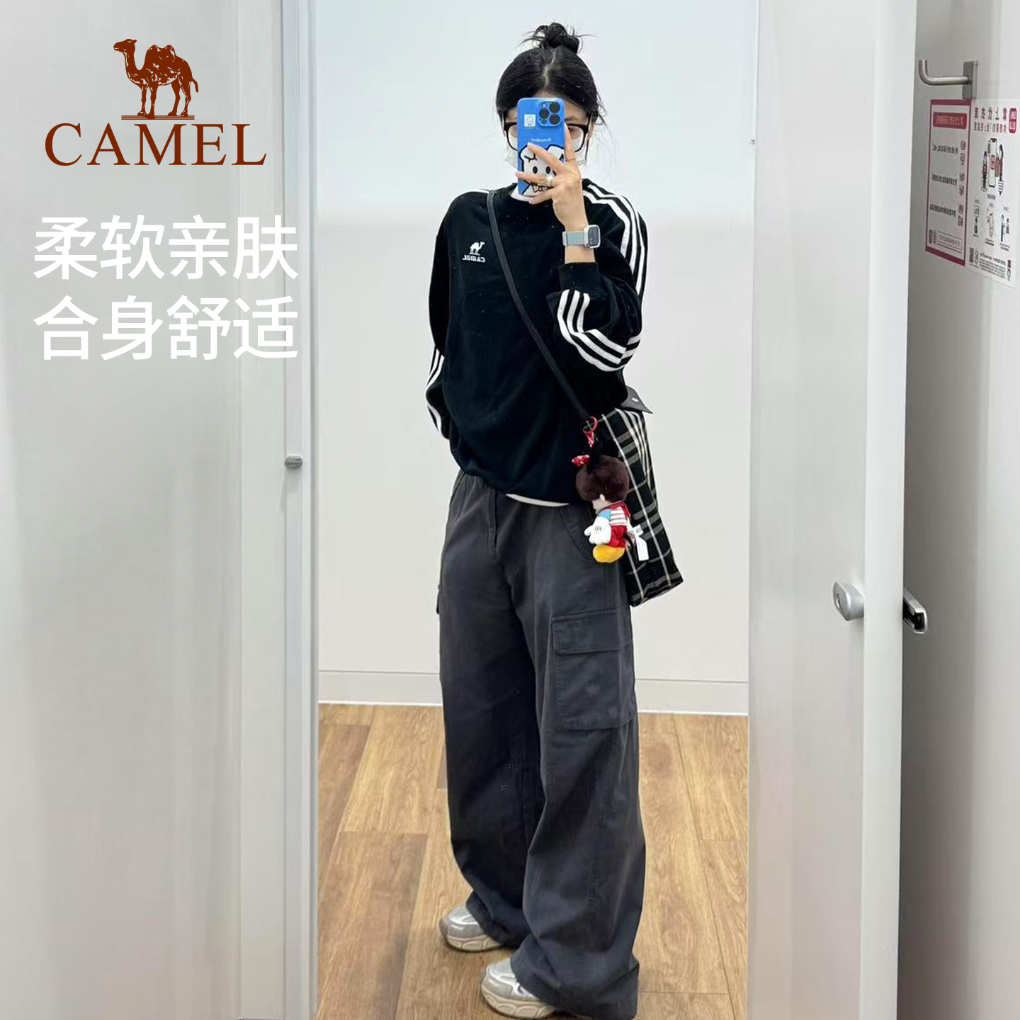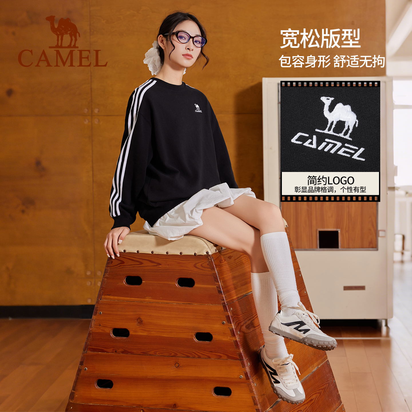 骆驼1930圆领卫衣秋季新款男女情侣黑色套头上衣宽松休闲长袖T恤