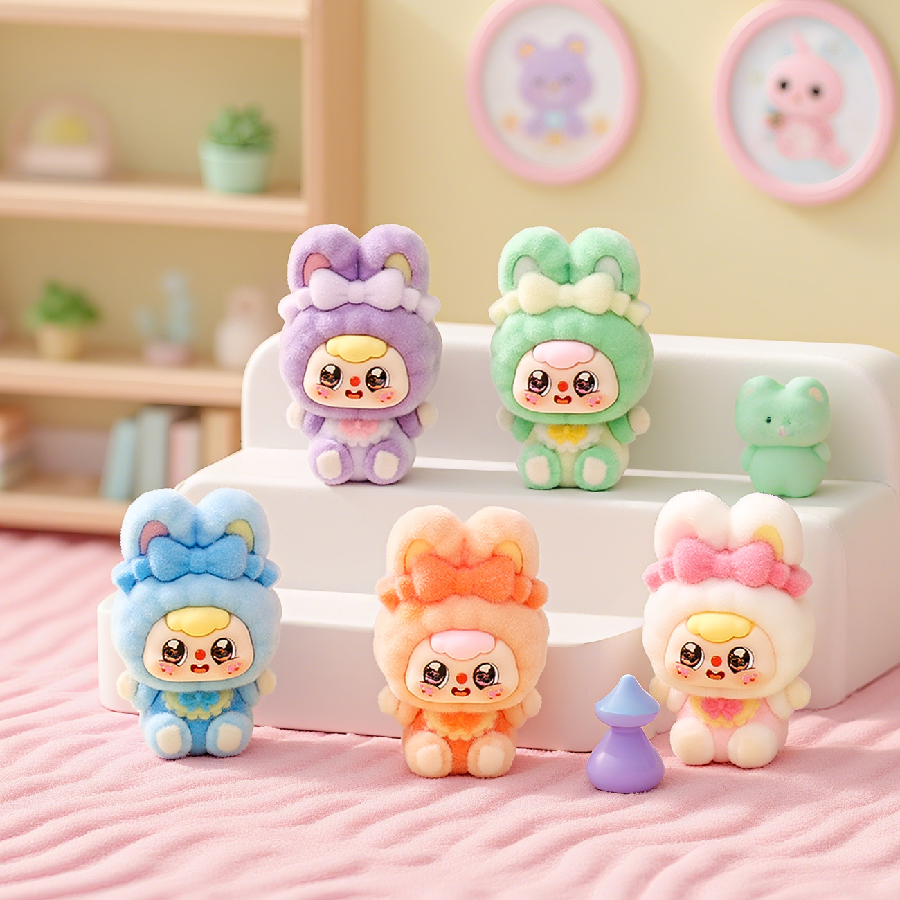 新品植绒萌粒摆件卡通可爱蝴蝶结兔兔桌面装饰品潮玩公仔创意礼品