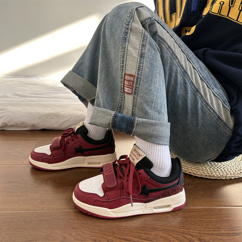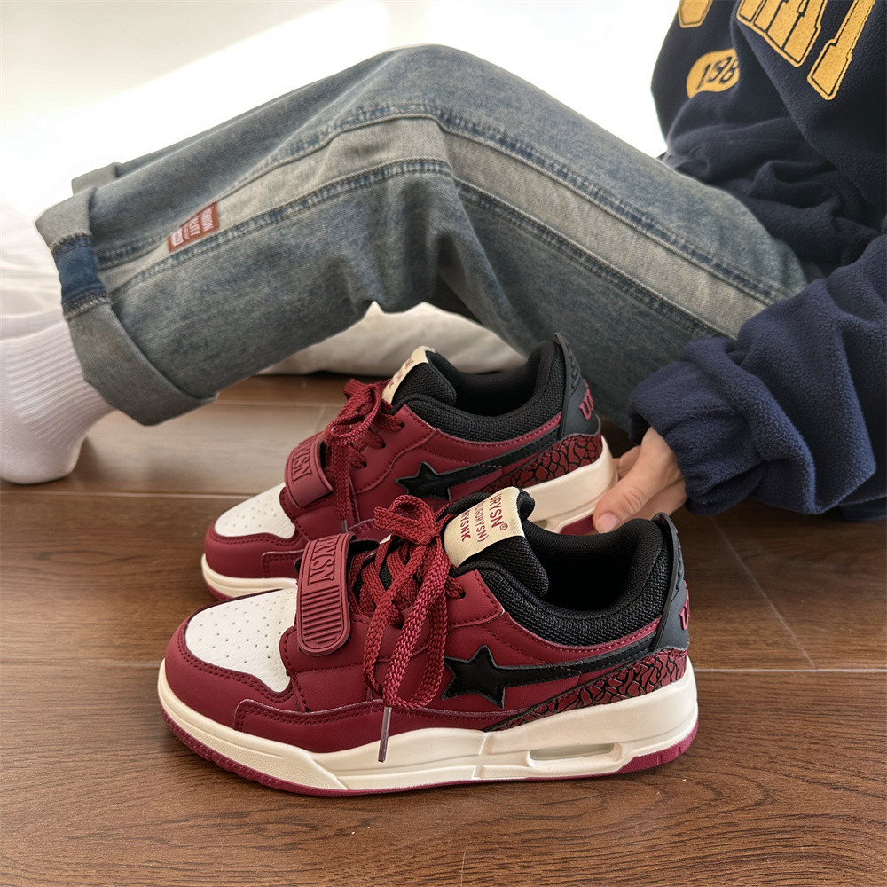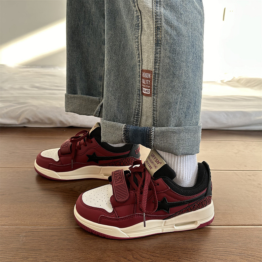 美式复古酒红撞色星星气垫鞋ins2025春夏新款情侣男女休闲板鞋子