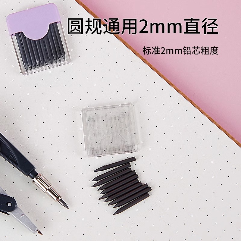 法国马培德圆规替换芯2B考试用绘图文具2mm圆规卷笔刀通用铅芯小巧便携装替芯10根/盒优质石墨官方旗舰店