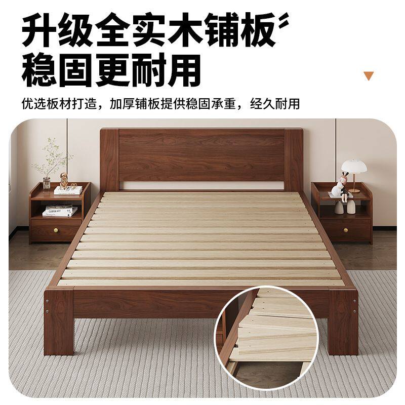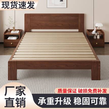 实木床现代简约家用主卧1米8双人床大床简易出租房用1.2m单人床架