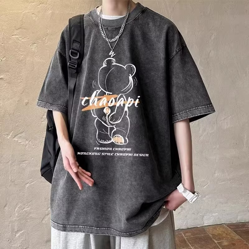 青少年酷帅短袖男夏季套装男装一整套美式穿搭纯棉T恤搭配牛仔裤