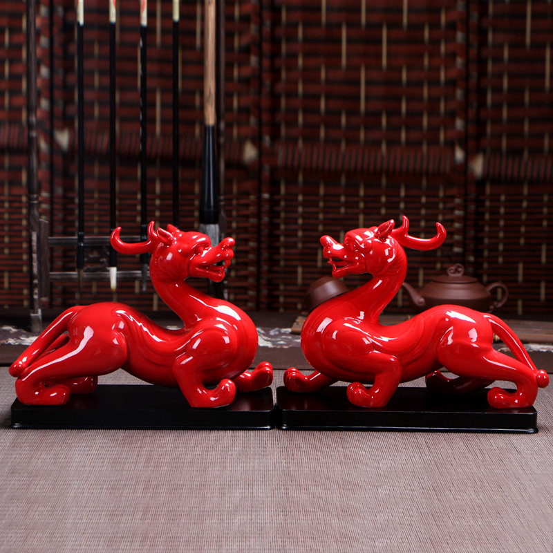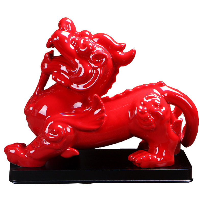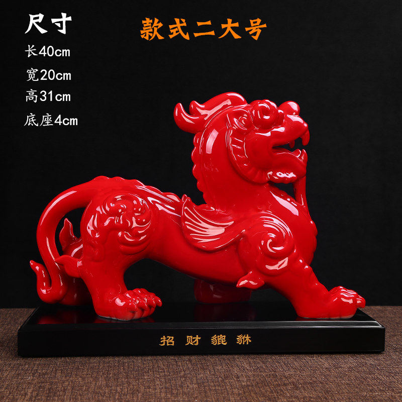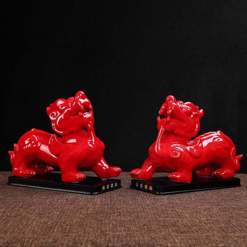 陶瓷貔貅摆件一对大号招财镇宅中国红办公室客厅风水装饰商务送礼