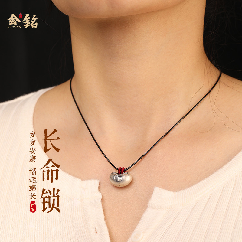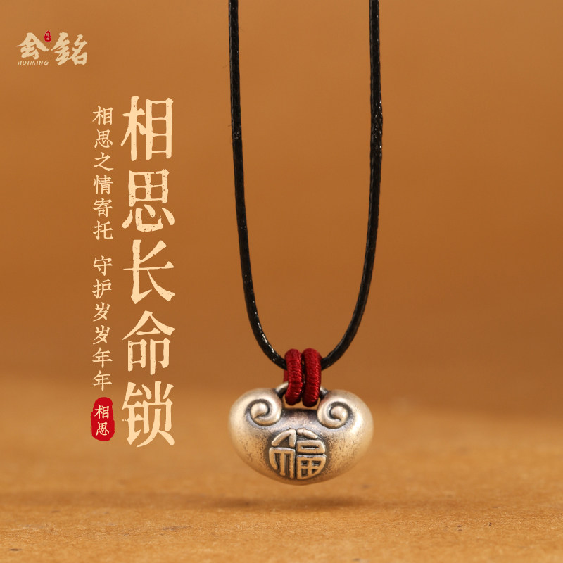 999足银相思长命锁项链女2025新款纯银锁骨链蜡绳毛衣链小众设计
