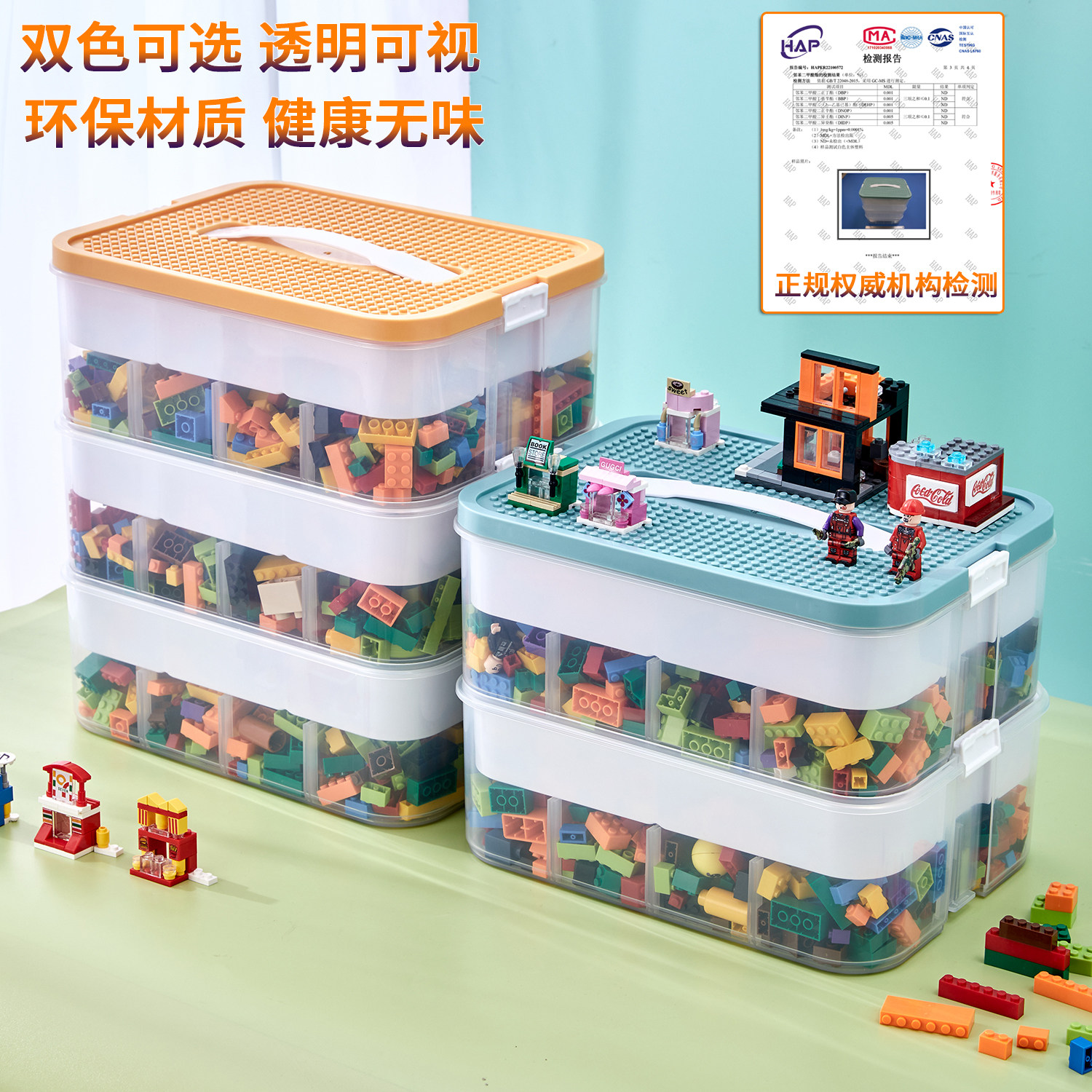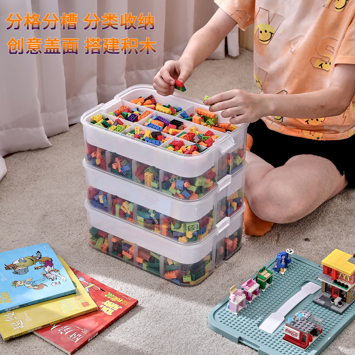 积木收纳盒多层儿童玩具盒拼装整理箱大容量小颗粒分格分类收纳箱